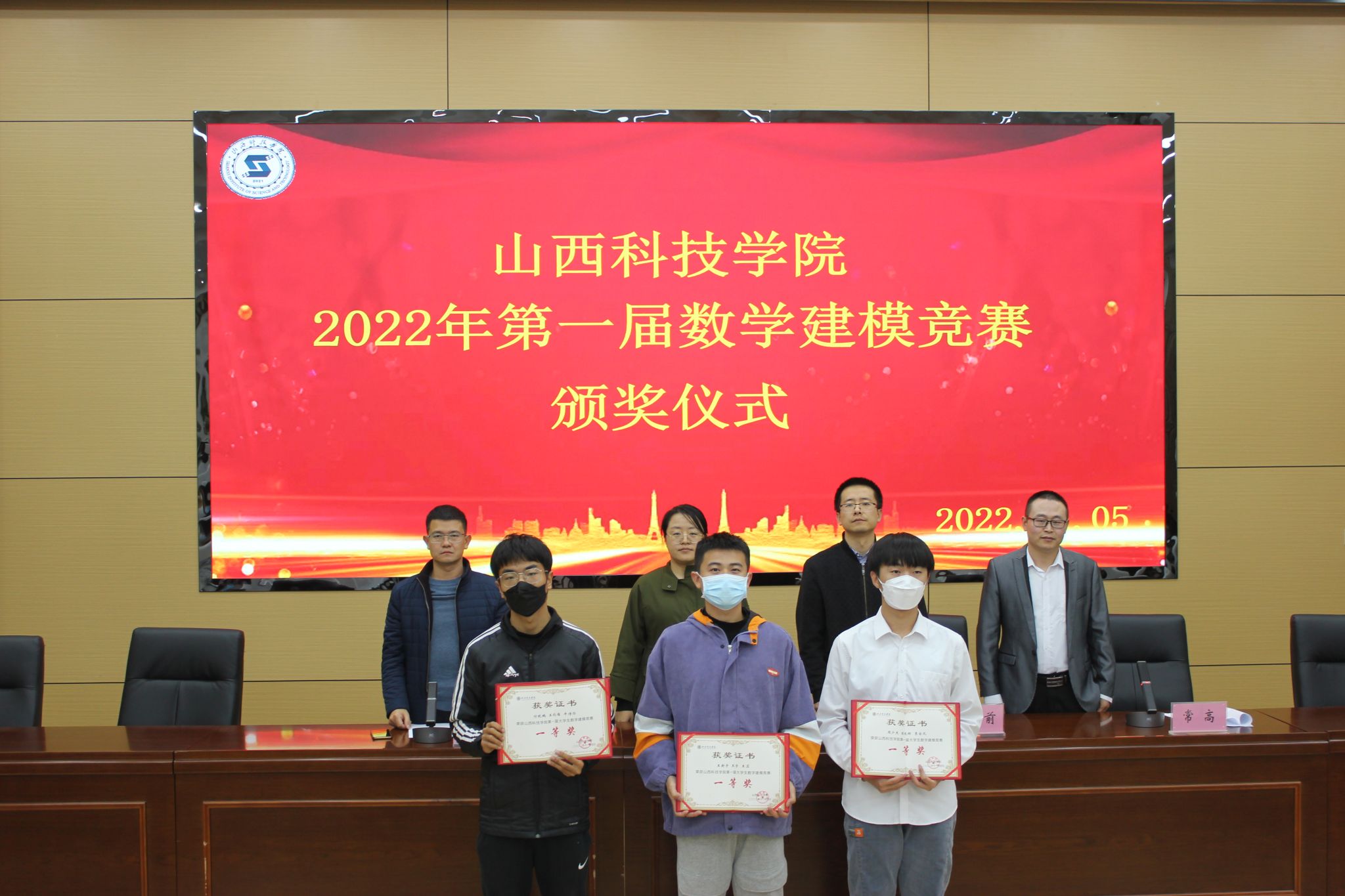 竞赛颁奖仪式于11月5日晚7点在图书馆一层报告厅举行,对外合作与科研管理部负责人许向前、教务部负责人李丽琴、大数据与计算机科学学院负责人宁晓青以及数学教研室全体教师出席活动,颁奖仪式由数学教研室负责人常高主持。