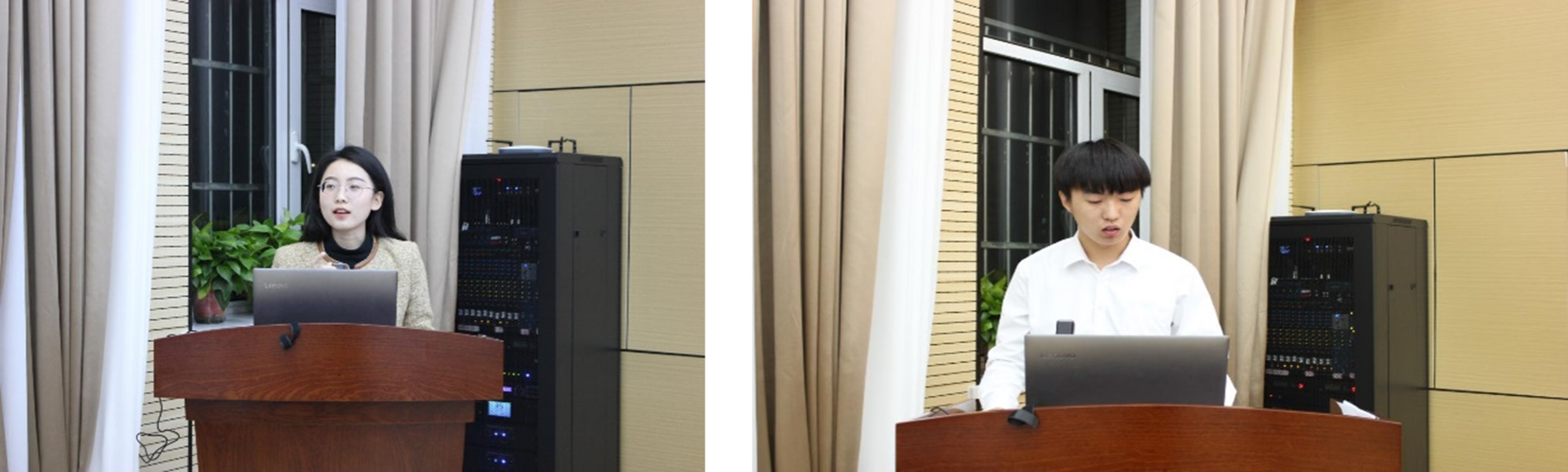 教师代表祁琪与获奖学生代表周少杰发言