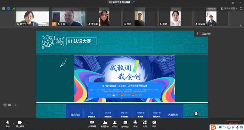 郭宁宁表示创新创业大赛是深入推动高等教育高质量发展,加快培养创新创业人才的重要手段,我院教师要树立创新创业学习的意识,平时注重创新创业知识的学习与积累,积极参与并指导各类创新创业活动,提升自身的创新创业意识与能力。