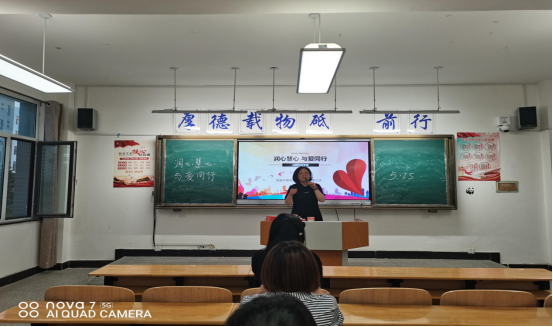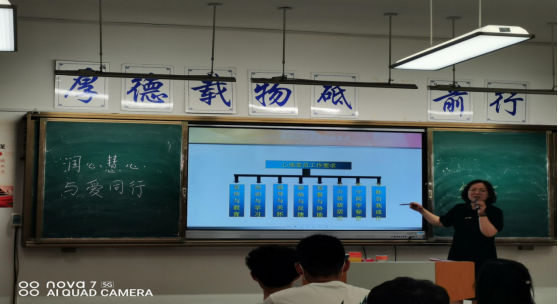 张老师围绕做一个心理健康的人需要树立三个意识、培养五种能力、心理委员工作要求等方面展开讲解。张老师通过幽默诙谐的语言,向同学们教授了如何正确认识自己,如何与同学、老师和家长进行沟通,如何爱自己爱他人等方面的内容,赢得在场同学的热烈赞许。