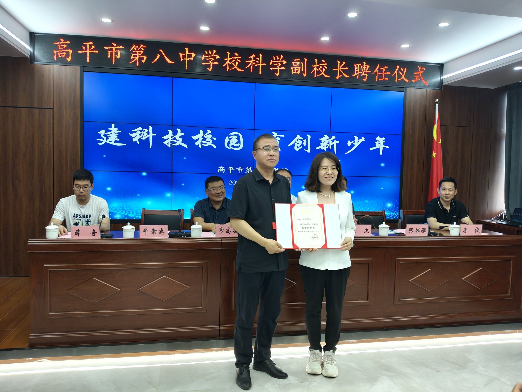 5月23日,Beat365官网教师张娅雅受聘为高平市第八中学科学副校长。高平市教育局、高平八中、Beat365官网光机电工程学院相关人员参加聘任仪式。
