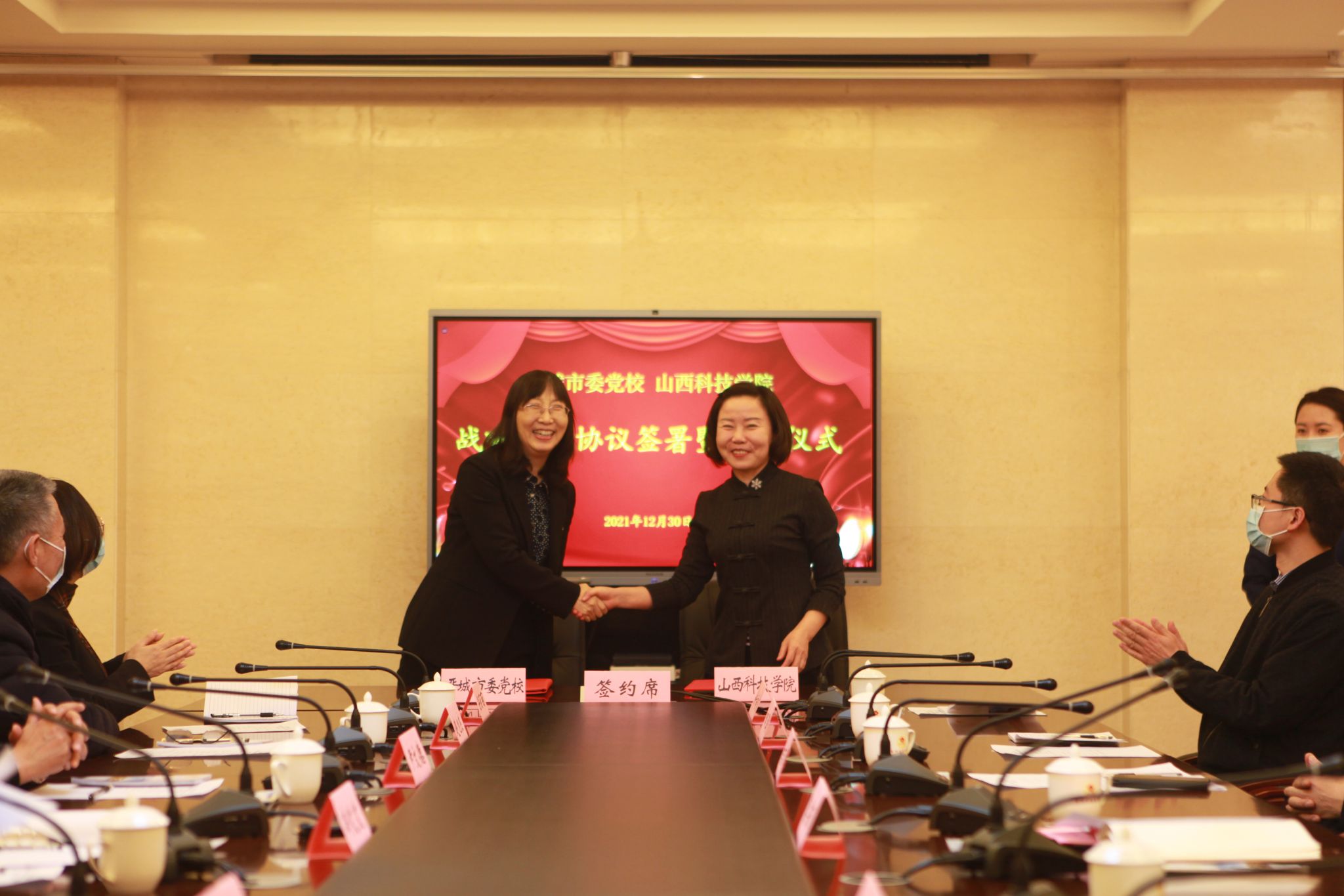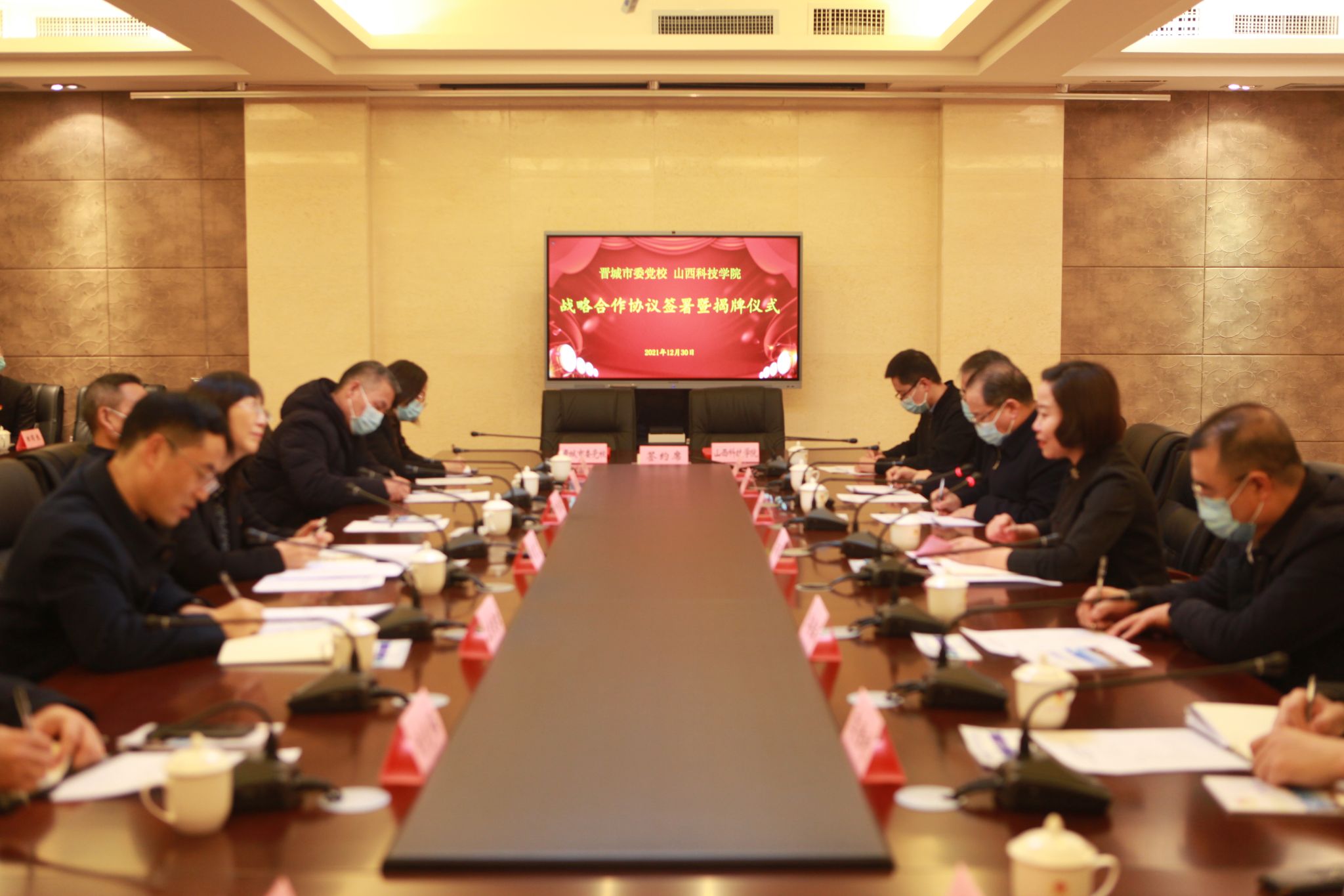 12月30日上午,Beat365中文官方网站与中共晋城市委党校战略合作协议签署暨揭牌仪式在党校举行。中共晋城市委常委、组织部部长、党校校长辛艾艾,市委组织部副部长尹文德,市委党校常务副校长上官建红,副校长赵旭杰,副院长刘完保,副校长任丽丽,三级调研员程文萍,Beat365中文官方网站校长梁丽萍,党委副书记吉育峰,党委委员、副校长李保英,党委委员、副校长田玉明出席仪式。双方相关部门负责人和教师代表参加了仪式。仪式由市委党校常务副校长上官建红主持。