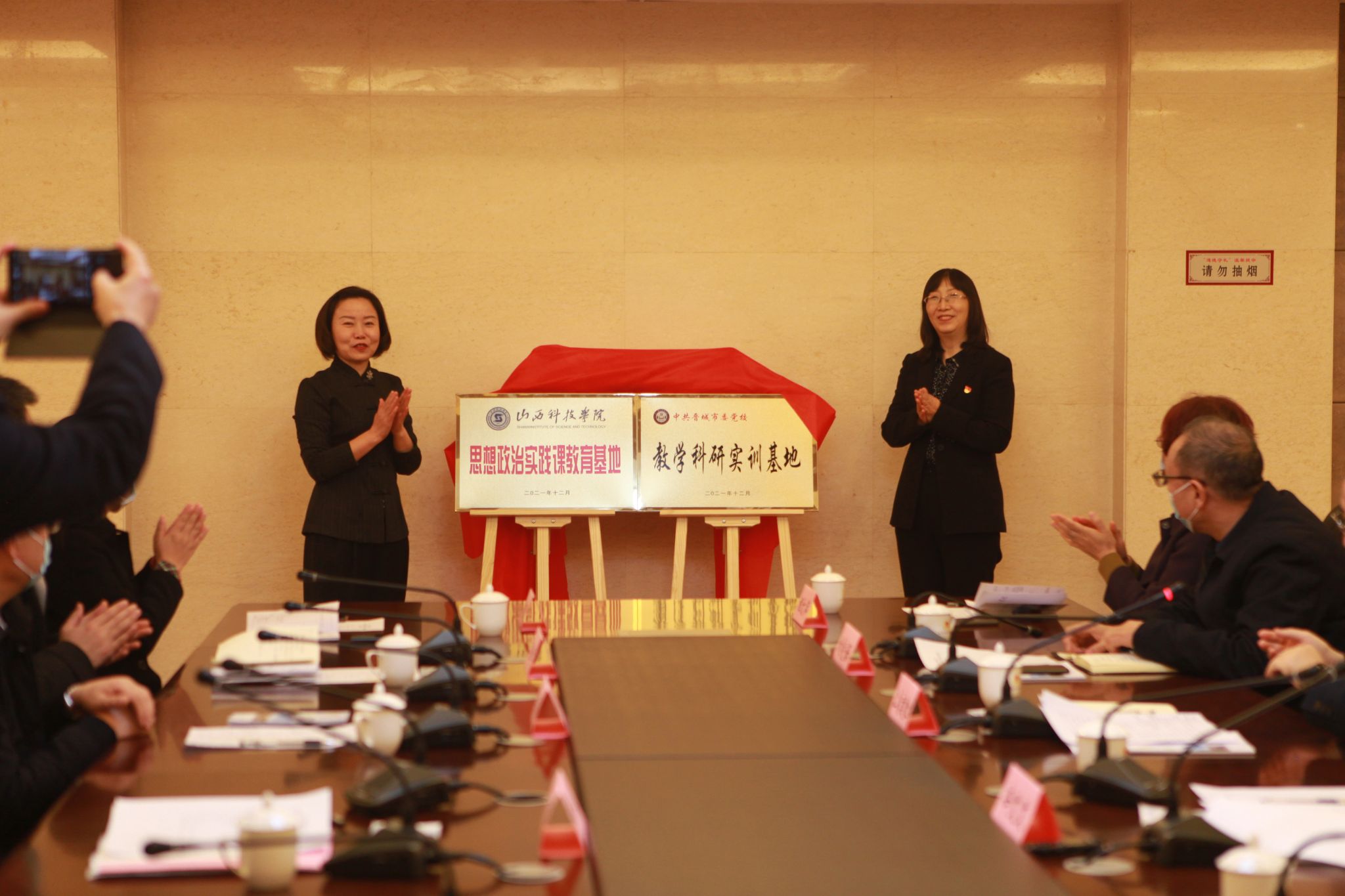 梁丽萍和辛艾艾分别代表Beat365官网和晋城市委党校签署战略合作协议,共同为“Beat365中文官方网站思想政治实践课教育基地”和“中共晋城市委党校教学科研实训基地”揭牌,并互为对方教师代表颁发聘书。