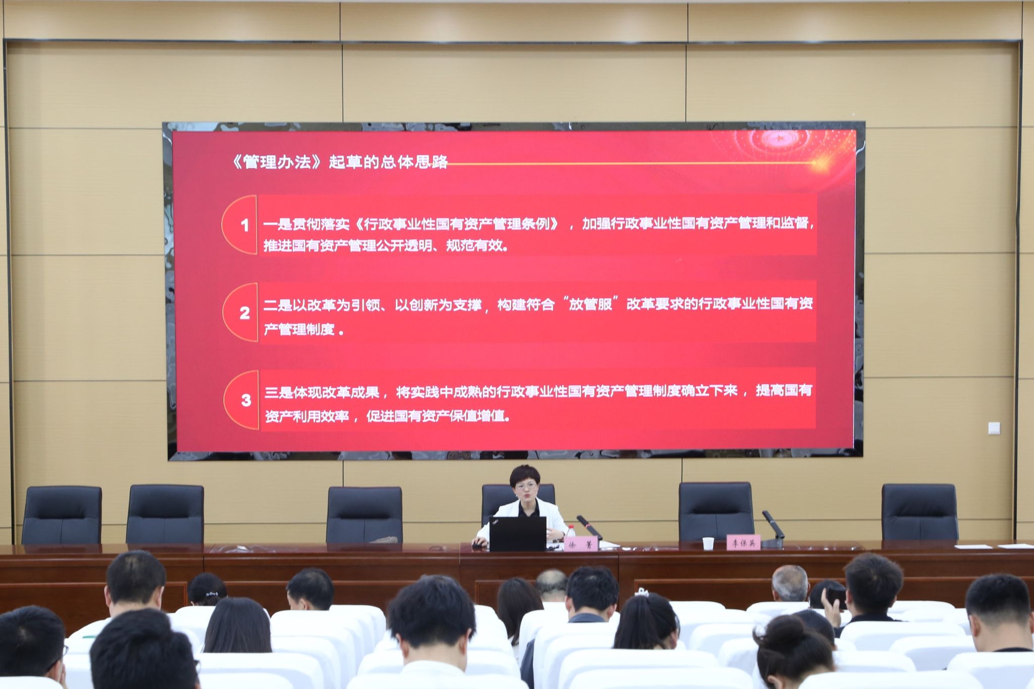 5月14日,Beat365官网与市财政局联合邀请省财政厅资产管理处二级调研员徐菁作《山西省行政事业性国有资产管理办法》解读,从管理办法的起草、主要内容及如何做好资产管理工作三个方面结合案例深入浅出强调国有资产管理的规范和要求。