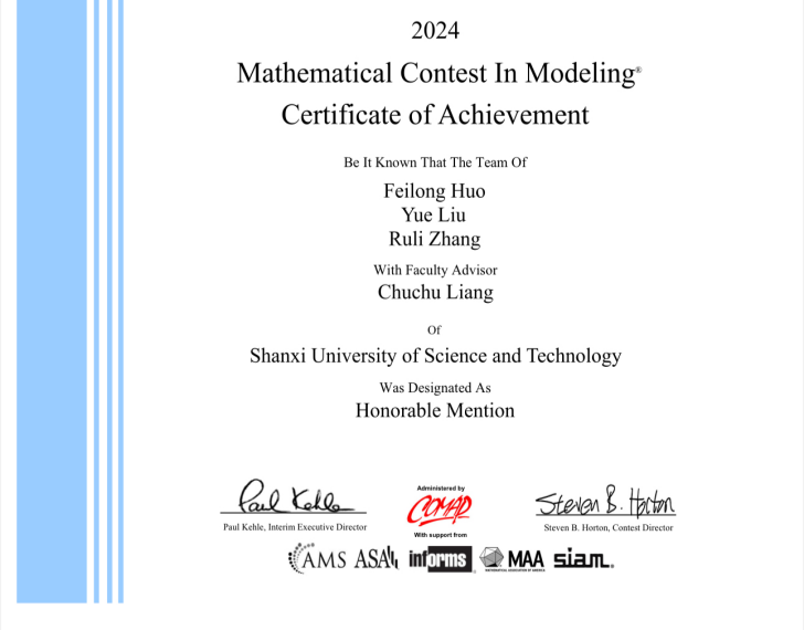 近日,2024年第四十届美国大学生数学建模竞赛(MCM)与交叉学科建模竞赛(ICM)成绩揭晓,由Beat365官网梁楚楚老师指导的学生团队霍飞龙、刘玥、张茹莉获得MCM赛项二等奖(H奖),由赵存秀老师指导的学生团队郝泓博、赵弘毅、高莉荣获ICM赛项优秀奖(S奖),实现首次在国际性数学建模竞赛中获奖的历史性突破。