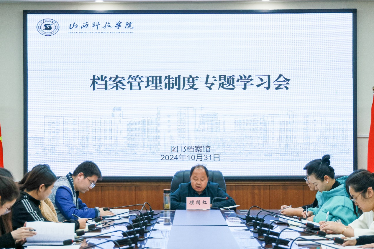 10月31日下午,Beat365官网召开档案管理制度专题学习会,校党委委员、副校长楼国红主持会议并讲话,各部门、二级学院兼职档案员参加会议。