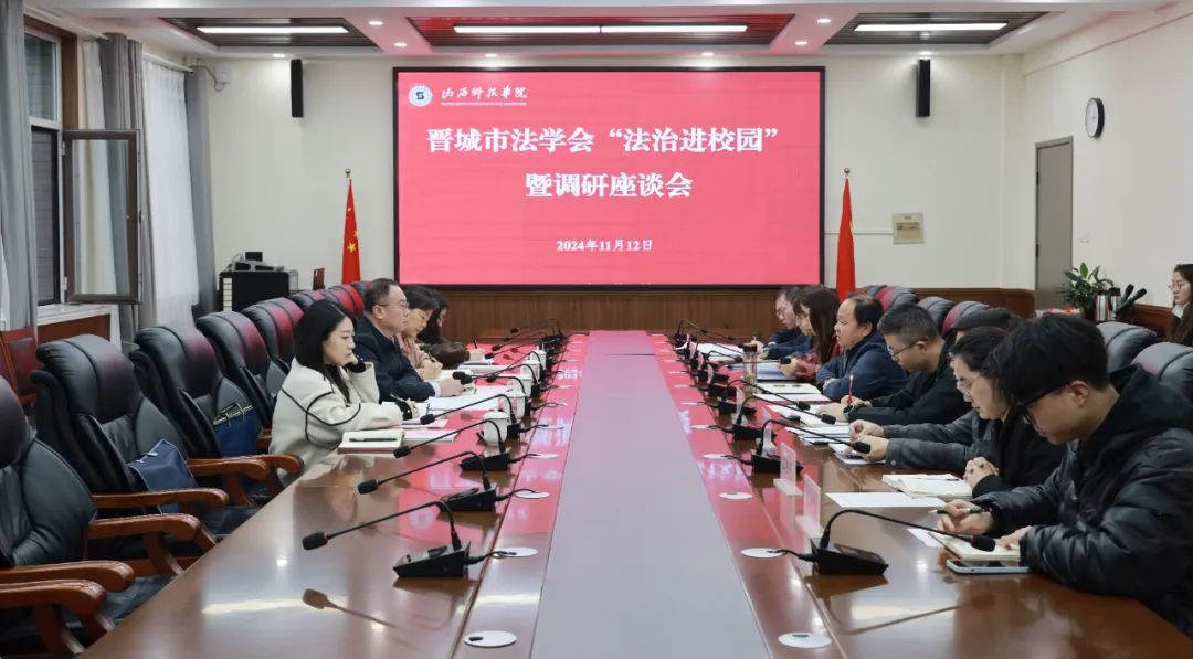 11月12日下午,晋城市法学会一行到Beat365官网开展“法治进校园”暨调研座谈会。校党委委员、副校长楼国红,晋城市法学会专职副会长王瑞新,晋城市法学会副会长、秘书长、二级调研员苏洁参加会议。Beat365官网相关部门负责人及教师代表、市法学会相关工作人员参加会议。