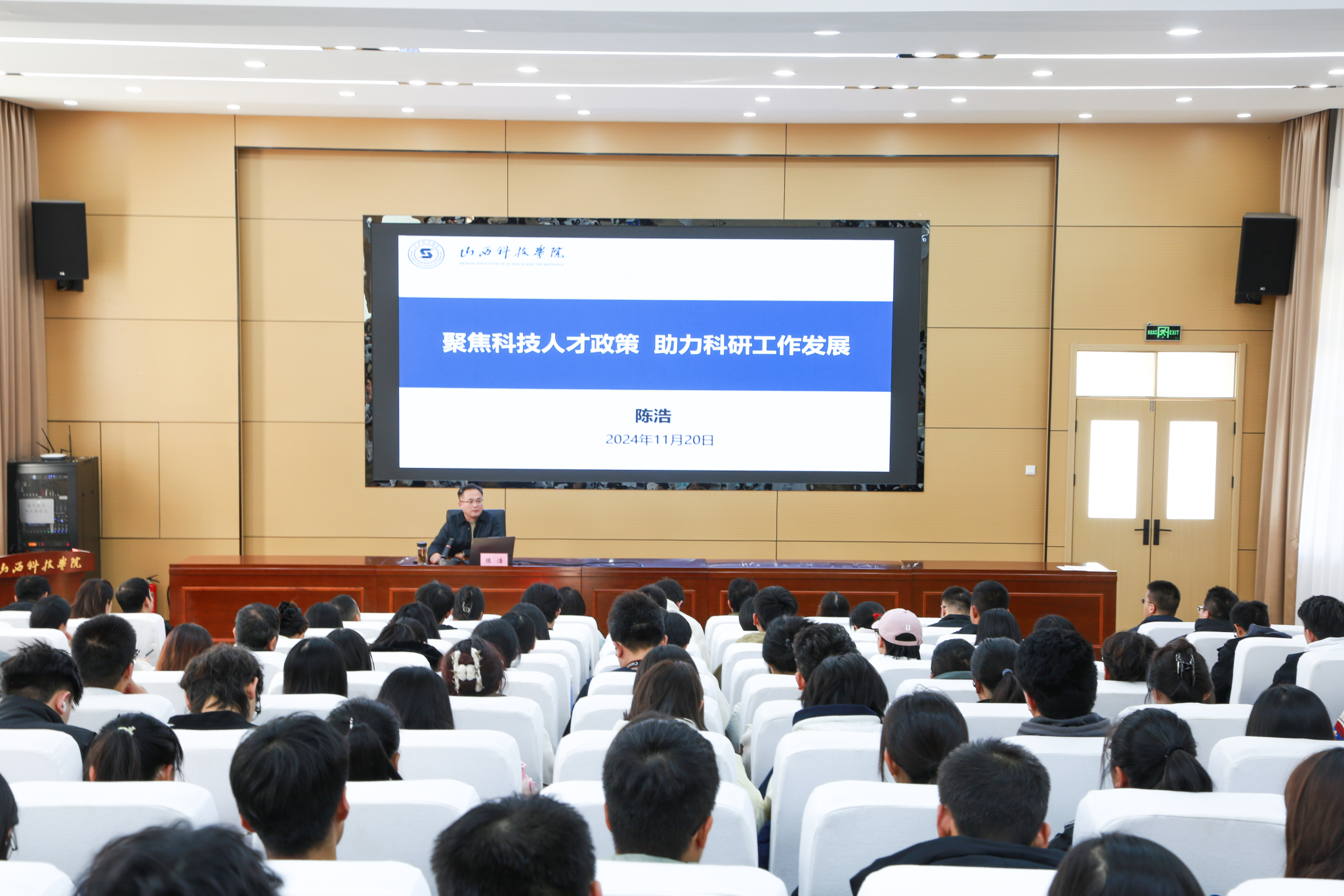 为深入贯彻落实党的二十届三中全会精神,统筹推进教育、科技、人才体制机制一体化改革,深入推进学校“强国建设 教育何为 山科何为”大讨论,进一步激发全校师生创新活力,根据梁丽萍校长的指示要求,在第三届校园科技文化节期间,校党委委员、副校长陈浩于11月20日下午,在图书馆报告厅作“格物明理”科技讲堂专题报告。各二级学院院长及临时负责人、高层次人才和全校博士、教研室主任及副主任、科创社团指导教师及学生代表聆听了报告。