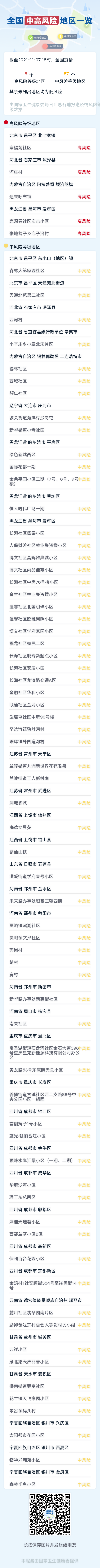 67个中风险地区