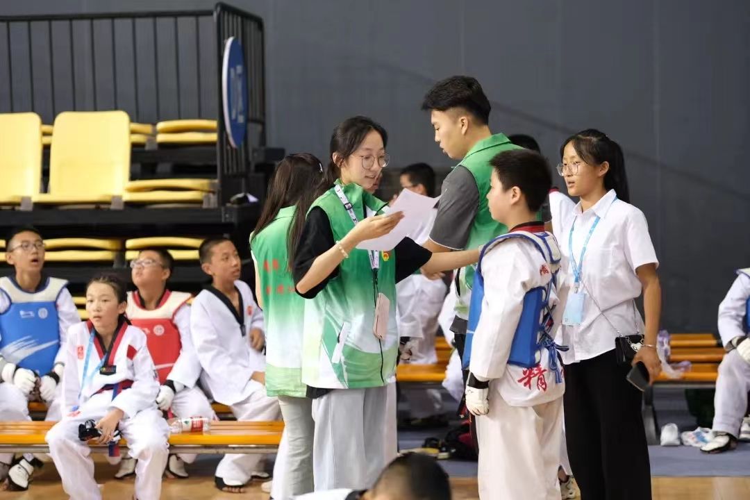 活动举行之初,教练员以及检录长带领郭佳宁所在的志愿者团队进行了系统的赛前培训,包括跆拳道比赛规则、注意事项、比赛芯片安装实操。她认真聆听、详细记录,为后续出色完成工作打下了坚实基础。