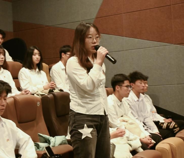 观影后,现场同学向在抗美援朝战争中的英烈默哀。大家深受震撼,百感交集,道出千言万语: