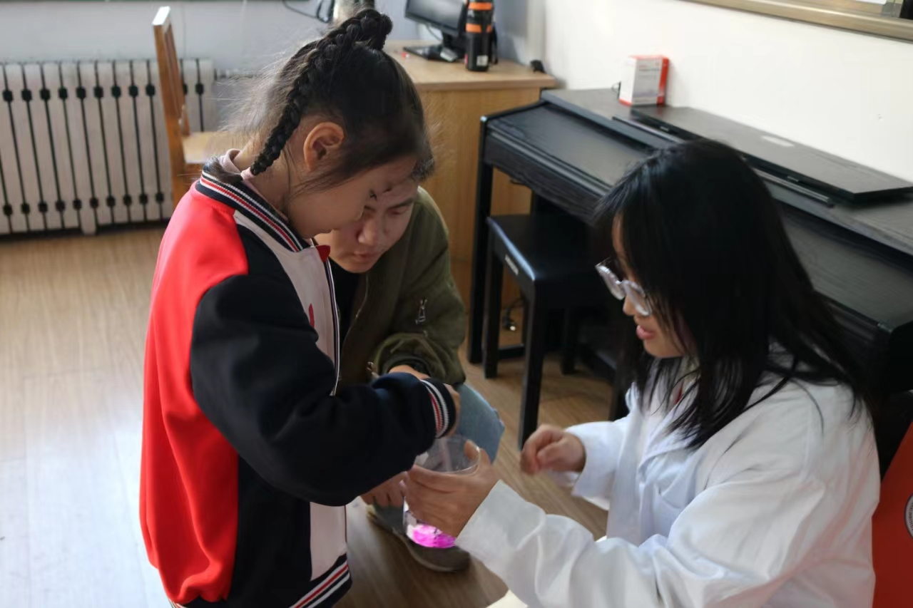 活动当天,志愿者们身穿实验服,手持丰富的化学实验器材,热情洋溢地来到黄头小学。可爱的孩子们迫不及待地聚集在一起,好奇地注视着“神秘”的“化学家”。志愿者们以化学趣味实验为活动载体,讲解了一系列有趣的生活化学知识,带领孩子们探索魔幻般的化学世界,亲身体验化学的神奇和乐趣。