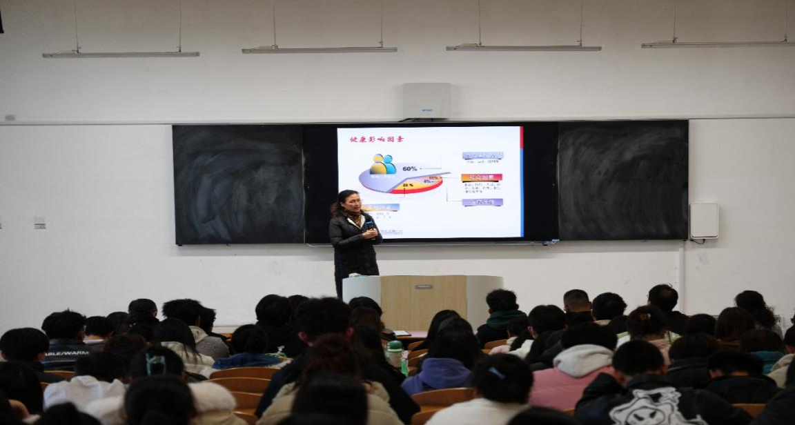 燕荣荣讲解了高血压、糖尿病、冠心病、慢性肿瘤等疾病的症状反应及慢性病的危害、预防和治疗方法,通过大量案例指出日常生活中普遍存在的认知误区,指导同学们进行饮食营养搭配,防止相关疾病的发生。
