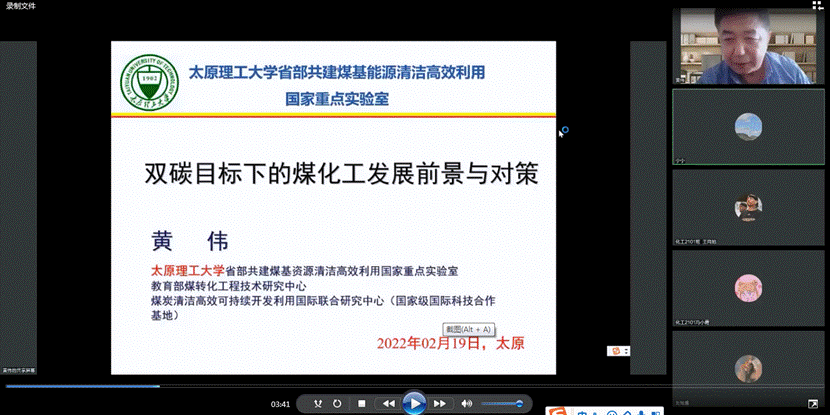 2月19日下午,化学工程学院特邀太原理工大学省部共建煤基能源清洁高效利用国家重点实验室黄伟教授为“魅力化工 美丽山科”系列讲堂开展主题为《双碳目标下的煤化工发展前景与对策》的线上专题讲座,化学工程学院全体师生参加了此次讲座。