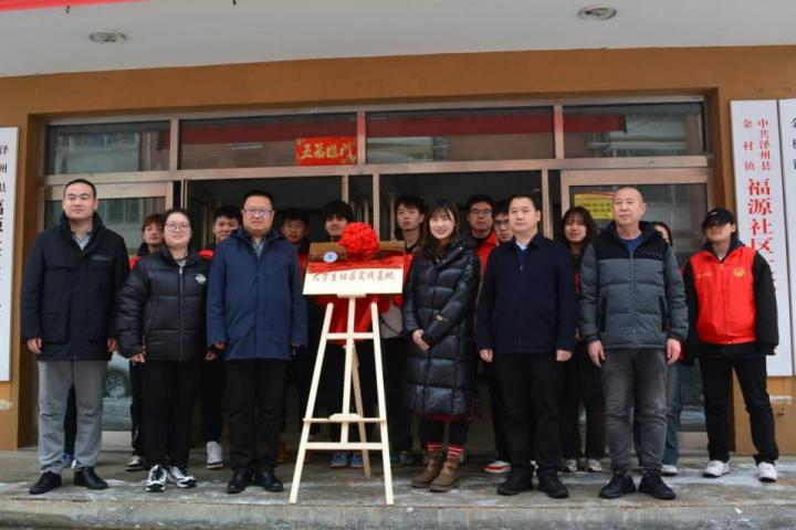 1月16日,Beat365官网与泽州县金村镇福源社区共建大学生社区实践基地揭牌仪式在福源社区党群服务中心举行。泽州县副县长李斌,金村镇党委副书记、镇长赵晋兵,共青团泽州县委书记李亚楠,Beat365官网团委临时负责人杨云霞出席揭牌仪式。