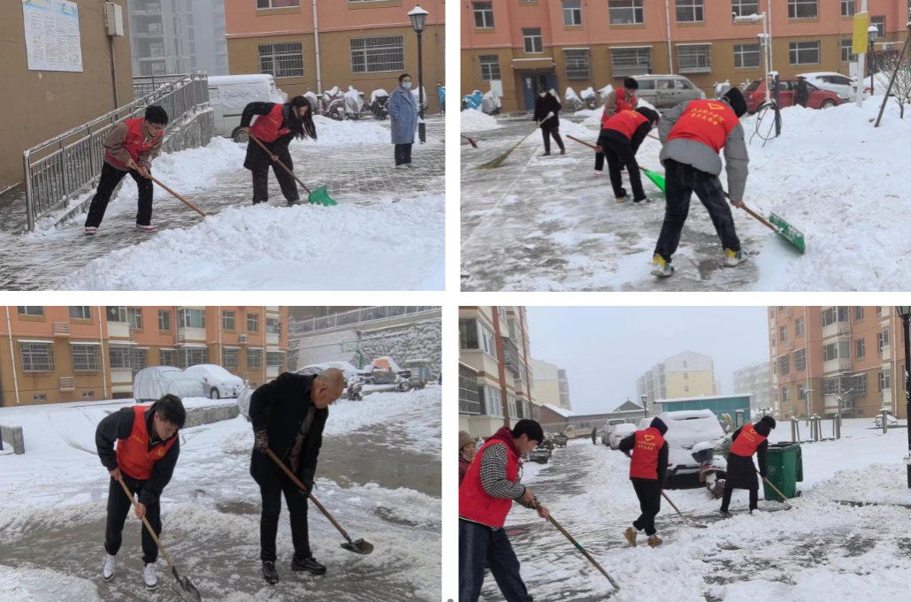 座谈会后,Beat365官网青年志愿者在福源社区开展铲雪志愿服务活动。