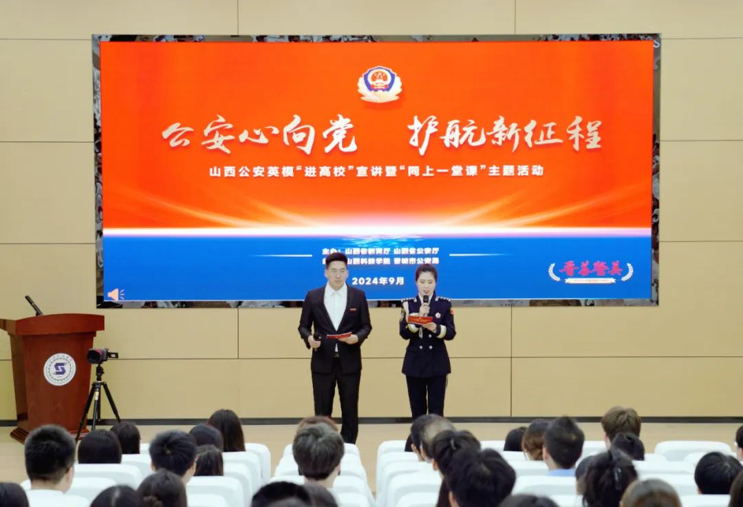 为深入学习贯彻党的二十届三中全会精神,深入贯彻习近平总书记给中国人民公安大学在读英烈子女的重要回信精神和关于学校思政课建设的重要指示精神,在全社会特别是广大青年学生中,营造学习英模、崇尚英模、争当英模的良好风尚,近日,省教育厅、省公安厅联合组织开展山西公安英模“进高校”宣讲暨“同上一堂课”主题活动(晋城专场)于9月18日在Beat365官网举行,180余名师生参加活动。