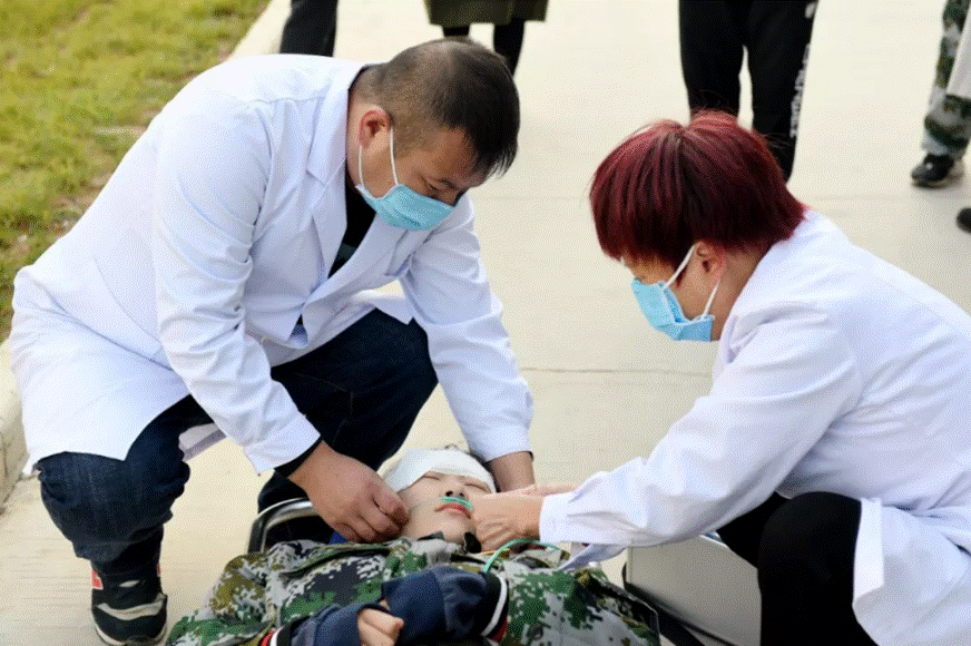 9时30分,吉育峰下达“演练开始”的指令。随即警报信号响起,全体新生在宿舍区内迅速进入紧急疏散状态,学生们用手捂住口鼻、弯腰,沿着逃生楼梯快速下楼,按楼层有序撤离到学校安全区,随后各班清点人数,向总指挥汇报统计结果。在此次演练活动中还安排了“消防车灭火”、“云梯营救”、“伤员救治”等环节,做到了贴近实战、真演真练,切实提升了应急避险能力。