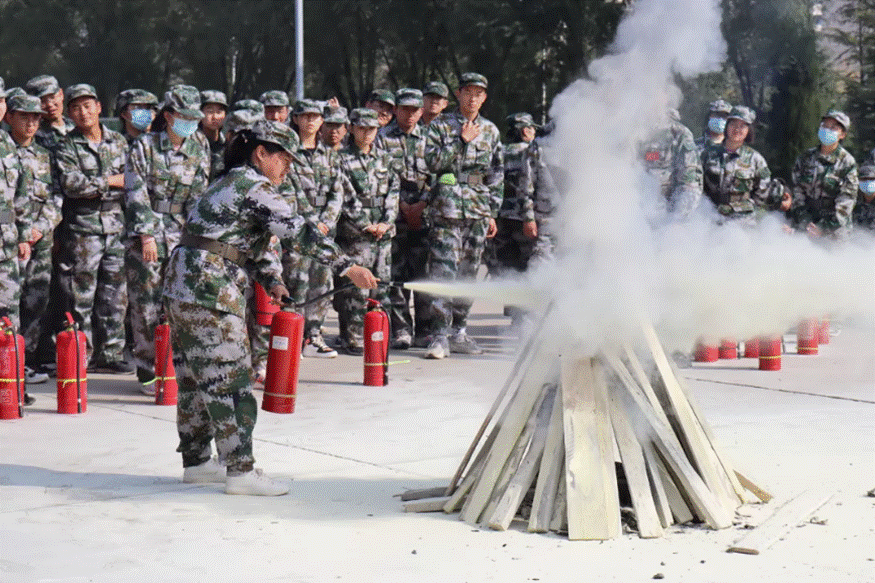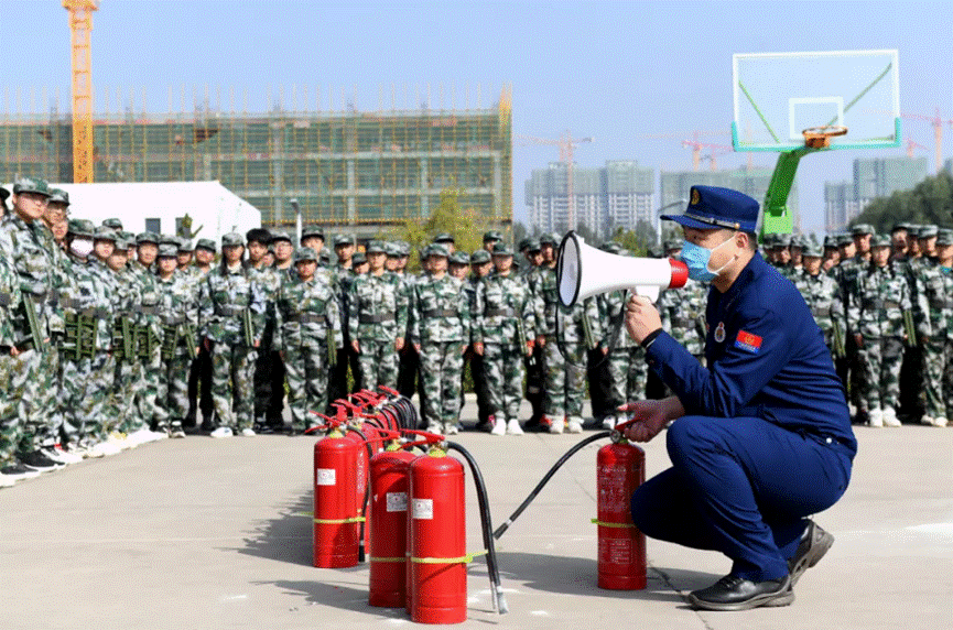 演练结束后,泽州县凤城路消防救援站消防员在灭火演练指定场所向同学讲解使用灭火器的方法,并邀请新生代表进行了灭火演练。