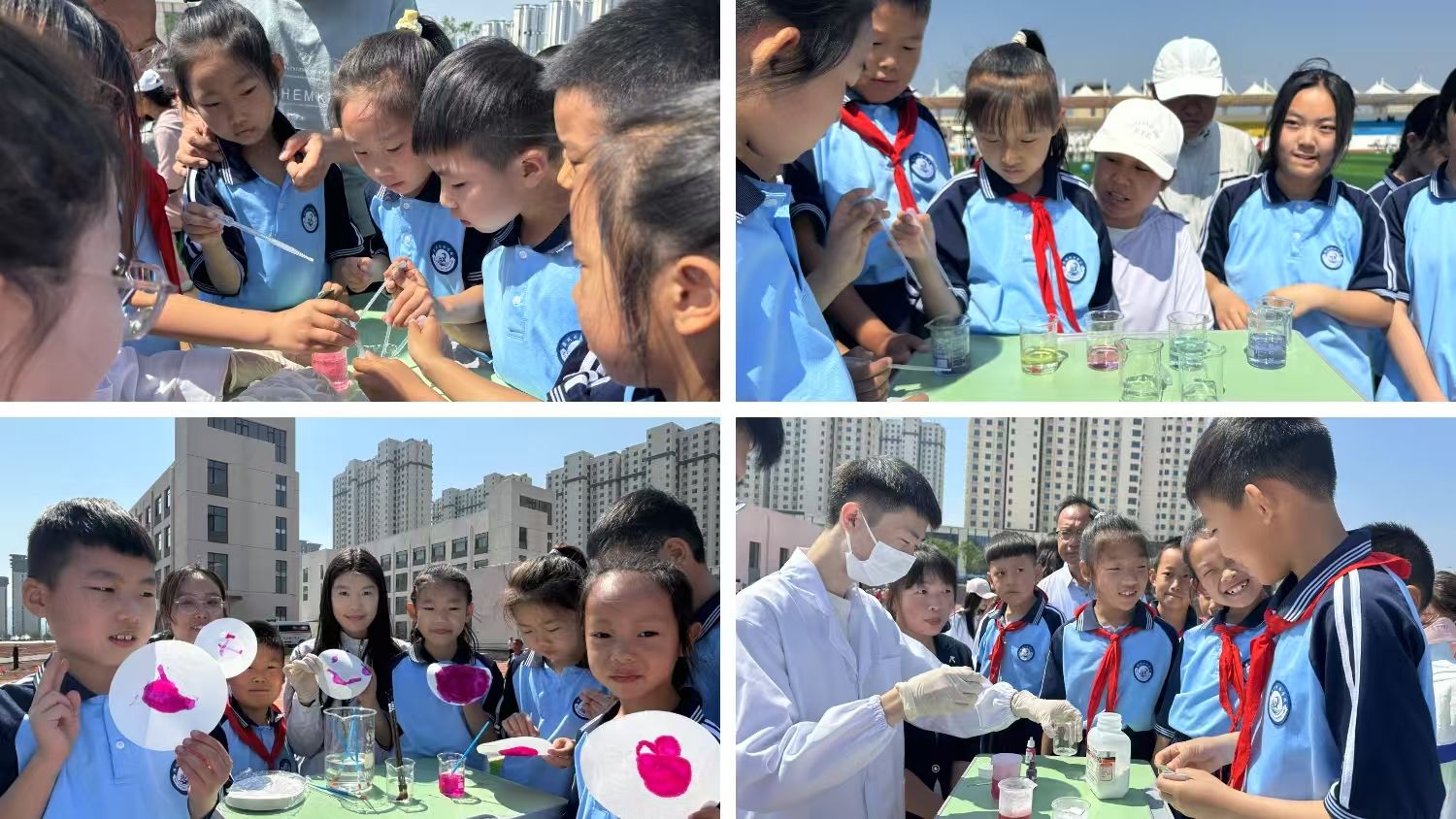 活动现场,志愿者们精心设计了多个趣味实验,内容丰富,形式多样。在“炉火纯氢”实验中,蓝色的火焰直观地展示了氧化还原反应的原理,吸引了同学们的目光;“自制火山喷发”实验利用小苏打和醋等常见材料,模拟出红色“岩浆”喷发的场景,志愿者们通过讲解酸碱中和原理,将抽象的知识变得通俗易懂;“牛奶动画”实验则将科学与艺术相结合,通过色彩的绽放生动展示了表面张力的奇妙现象;“神奇墨水”实验以酚酞书写“无字天书”,遇氢氧化钠后显字,激发了学生们强烈的好奇心;“紫甘蓝变色”实验更是让学生们积极参与,纷纷猜测变色背后的科学原理。