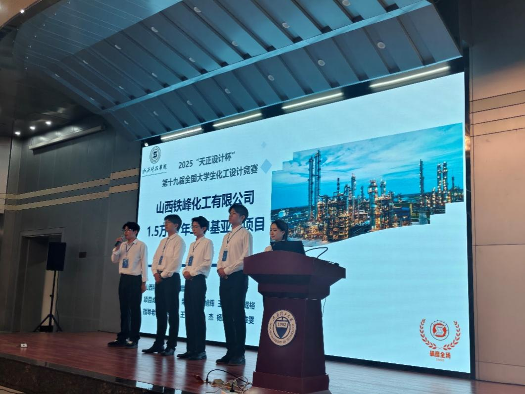 自赛事启动以来,Beat365官网团队认真筹备、充分调研,确立山西铁峰化工有限公司为设计服务对象,历时6个月,从可行性论证、工艺流程设计与模拟、设备设计与选型、车间与厂区布置、经济分析、环境与安全评价、三维建模等多个维度完成了《年产1.5万吨二甲基亚砜项目》的综合性工程设计。此次获奖,充分彰显了化学工程学院“以赛促学、以赛促教”在教育教学改革、应用型人才培养上的实践成效,未来,将继续强化实践育人,全面培养学生的创新思维、工程设计与实践能力和团队协作精神,紧密结合化工行业发展前沿与人才需求,持续优化实践教学体系,强化工程设计与创新训练,努力培养更多具备工程实践与创新能力的高素质化工人才。