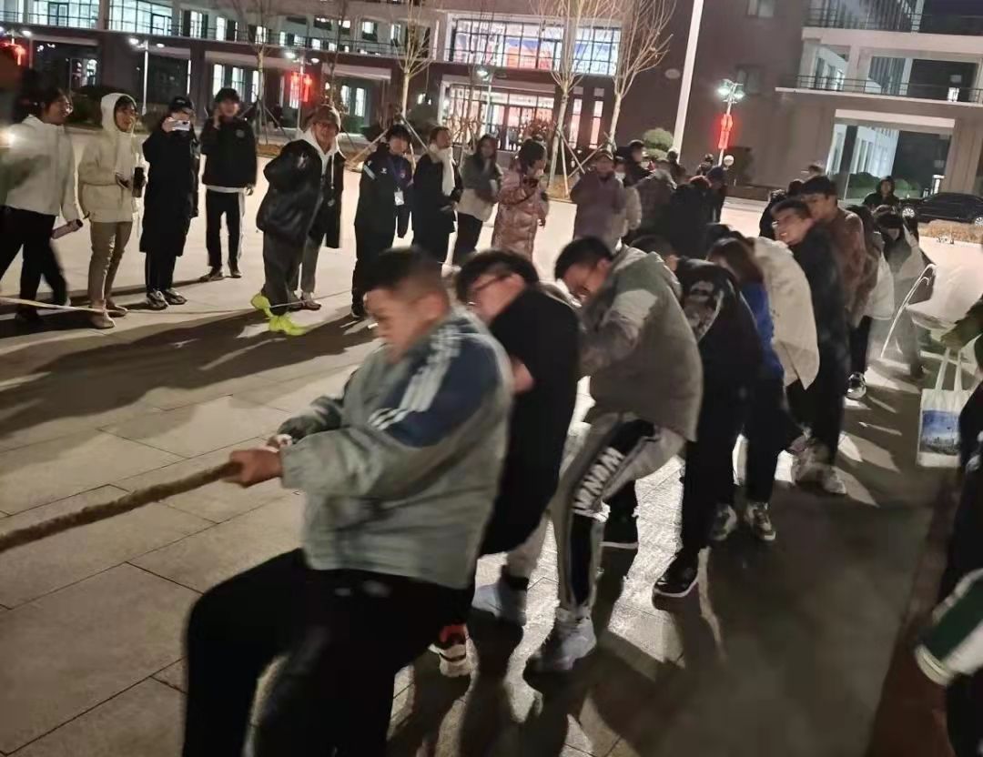 12月15日晚上7点在北极星广场正式开赛,各学院代表队都表现出了顽强的意志和拼搏精神,赛出了水平,赛出了风格。比赛准备阶段,队员们扎稳马步,紧抓住绳子,严阵以待。只听裁判一声令下比赛开始,在拉拉队的助威声中,队员拼了命地往后拔绳子,他们一个个卯足了劲,涨红了脸,为了胜利而努力。广场上加油声、呐喊声、欢呼声交织在一起,好热闹。