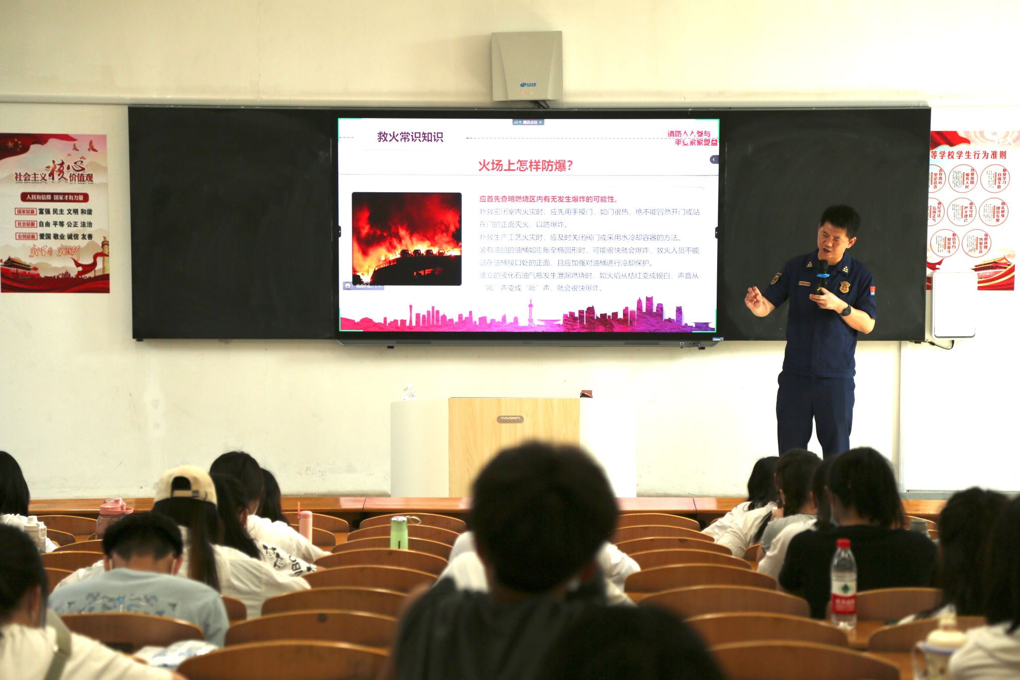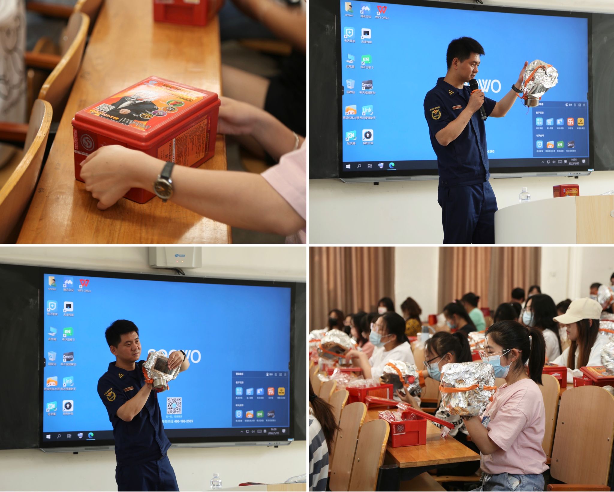 茹教官认真讲解了有关灭火器、灭火毯的正确使用方法,以及如何防范火灾隐患、如何报火警、如何火场逃生等知识。特别是对频繁发生的电气火灾、燃气火灾的应对方法进行了详细指导。在互动环节,茹教官现场指导大家使用过滤式消防自救呼吸器的正确方法及注意事项,并就本次讲座内容进行了深入交流,理论性和指导性都非常强,进一步提高了全体师生员工的消防意识。