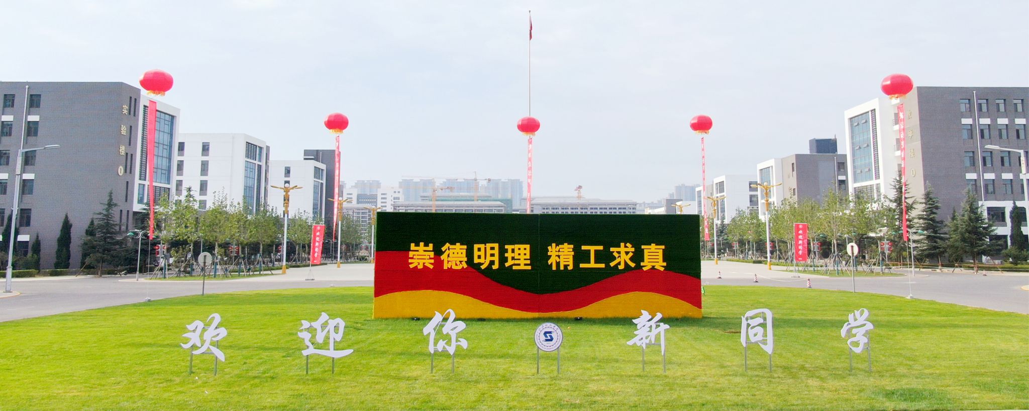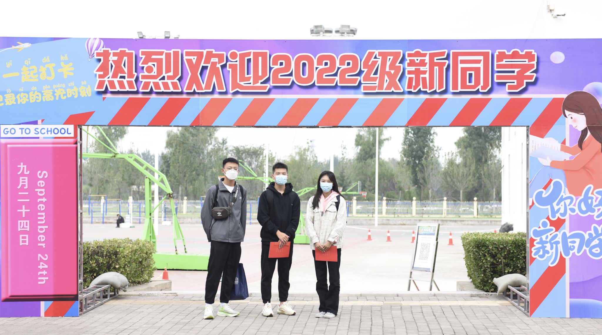 9月24日清晨,学校内外彩旗飘扬,欢迎条幅、宣传展板鲜亮醒目,校园里处处洋溢着迎新的喜庆气氛。