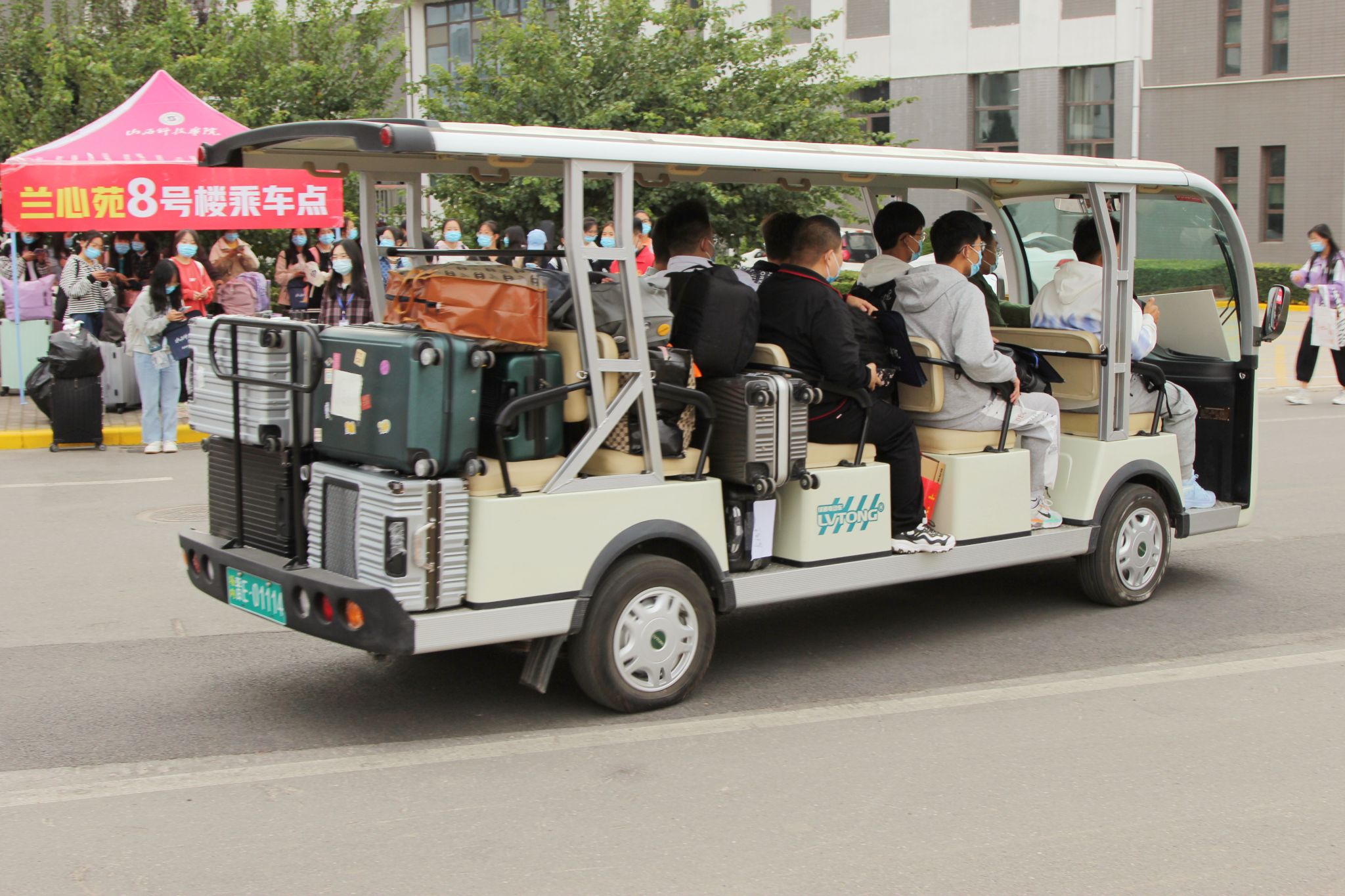 学校在晋城东站和客运站设置新生接站点,配备专门接送车。相关部门和各学院的工作人员,学生志愿者早早就位,迎接新生的到来,为新生们的安全抵达保驾护航。