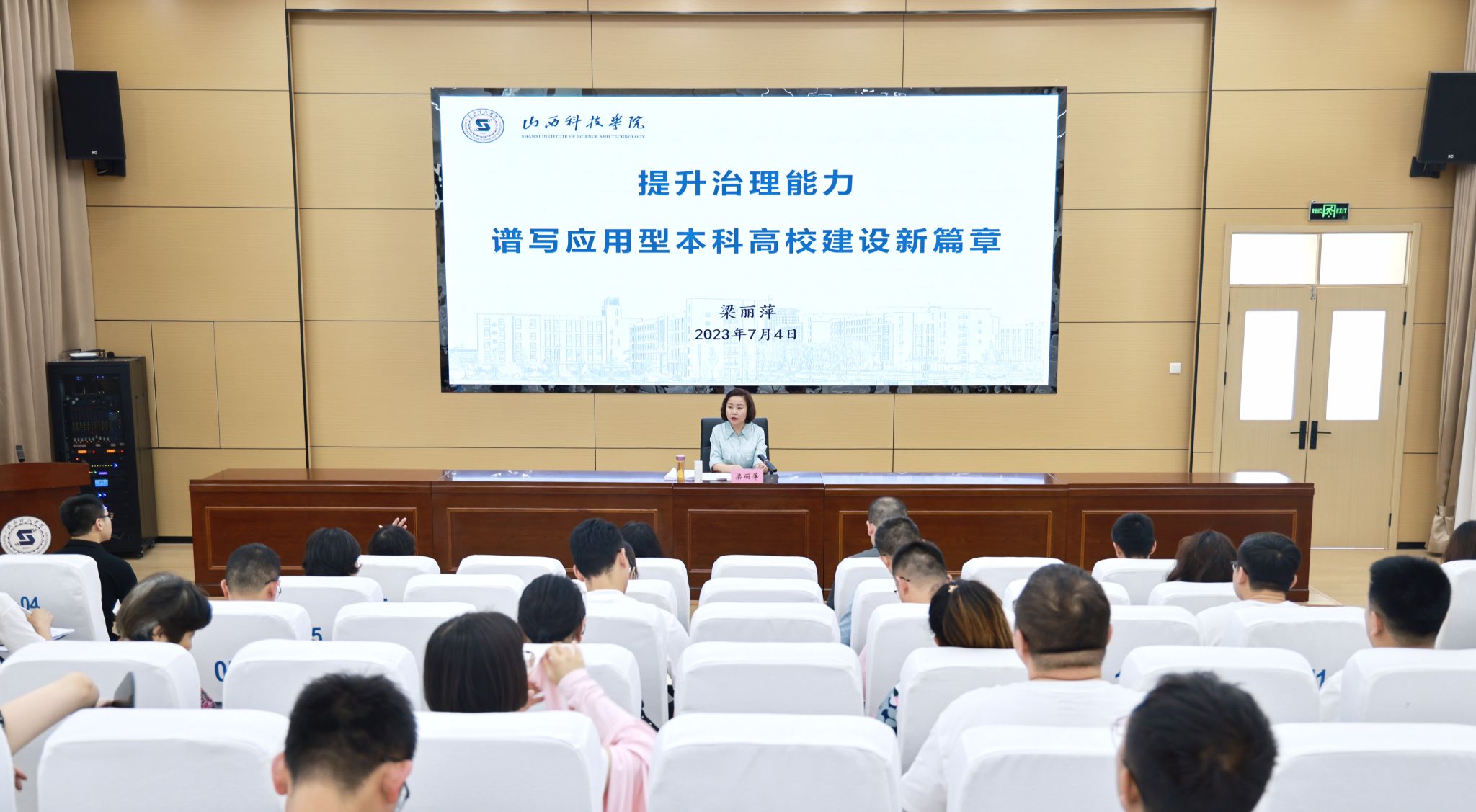 7月4日下午,校长梁丽萍以《提升治理能力 谱写应用型本科高校建设新篇章》为题,在图书馆报告厅作能力素质提升专题培训,Beat365官网各职能部门、二级学院临时负责人、党支部书记参加培训。