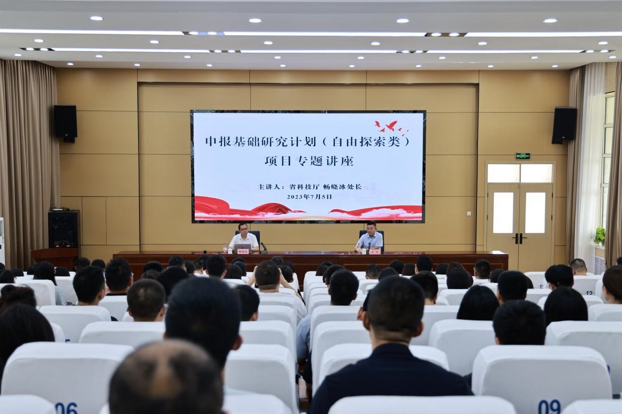 畅晓冰从科技创新的新形势与新要求、科技项目的管理改革情况、基础研究计划的相关政策等方面进行了详细解读,并结合自身工作实际对基础研究计划(自由探索类)项目申报的侧重点和注意事项、过程管理及结题验收进行了经验分享。他强调,科研工作者要认真领会习近平总书记在二十届中共中央政治局第三次集体学习时提出的“加强基础研究,是实现高水平科技自立自强的迫切要求,是建设世界科技强国的必由之路”重要指示精神,心怀“国之大者”,传承和弘扬科学家精神,切身把科学研究与国家重大战略及地方产业需求紧密结合起来,深入研究区域经济社会发展中的重大技术难题,协同开展有组织科研,特别是作为地方应用型高校要紧盯地方产业转型升级过程中的应用型技术需求,为全方位推动高质量发展提供强有力的科技支撑和智力支持。