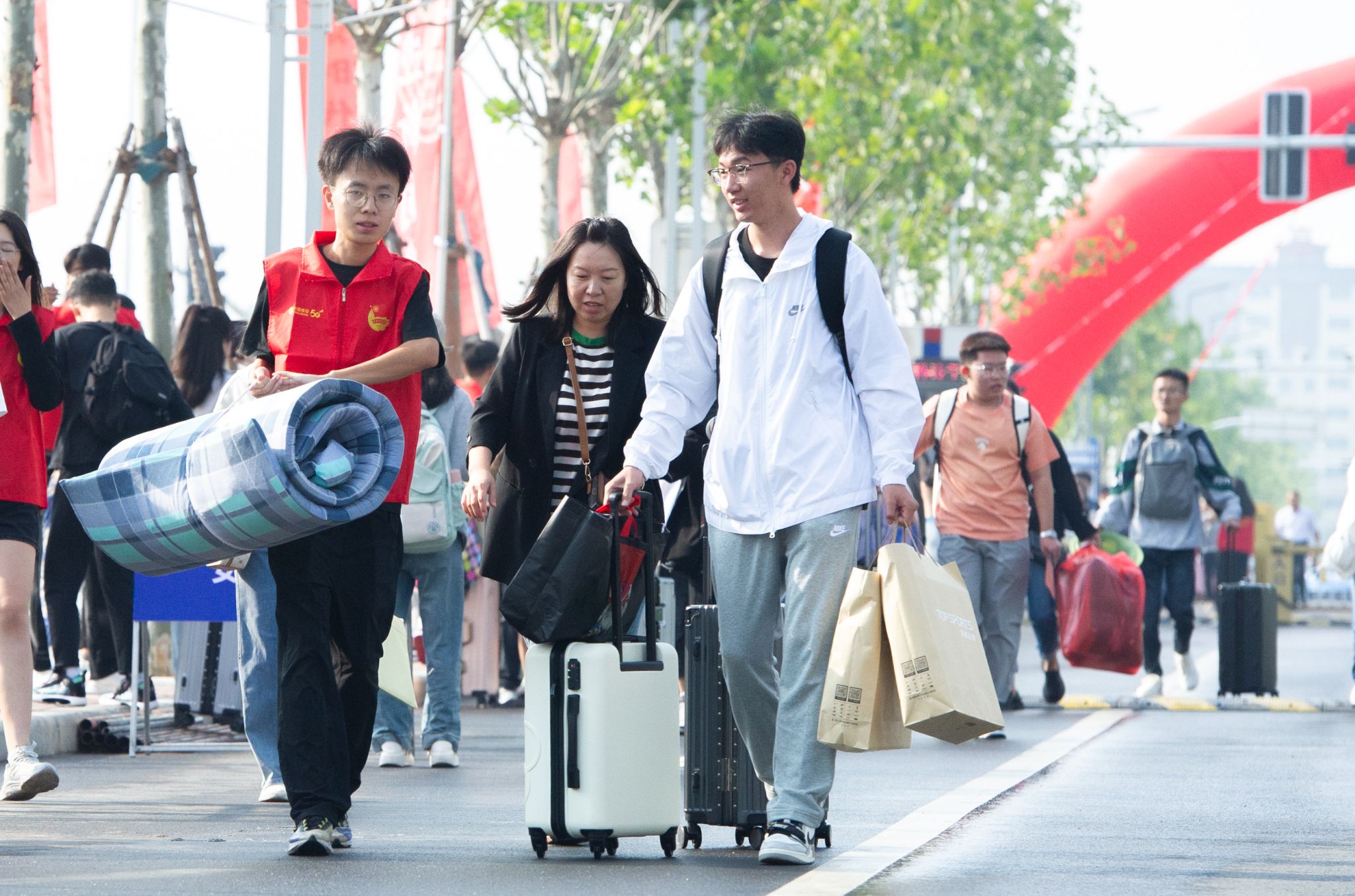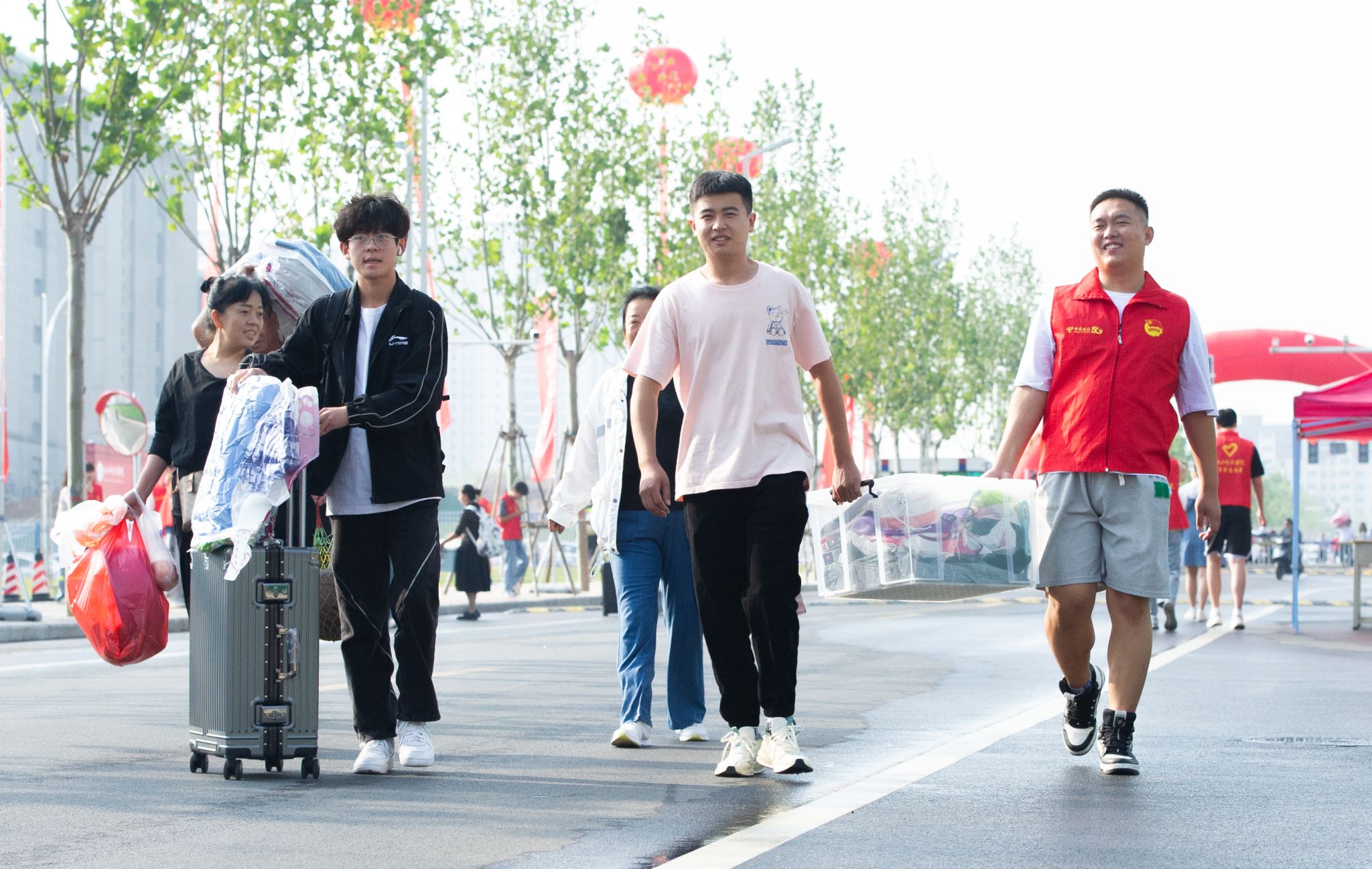 走进校园,学长学姐们穿梭在人群中,帮助新生搬运行李、耐心指引报到路线、疏导校门内外交通,不停地用脚步丈量温情、用行动温暖人心。