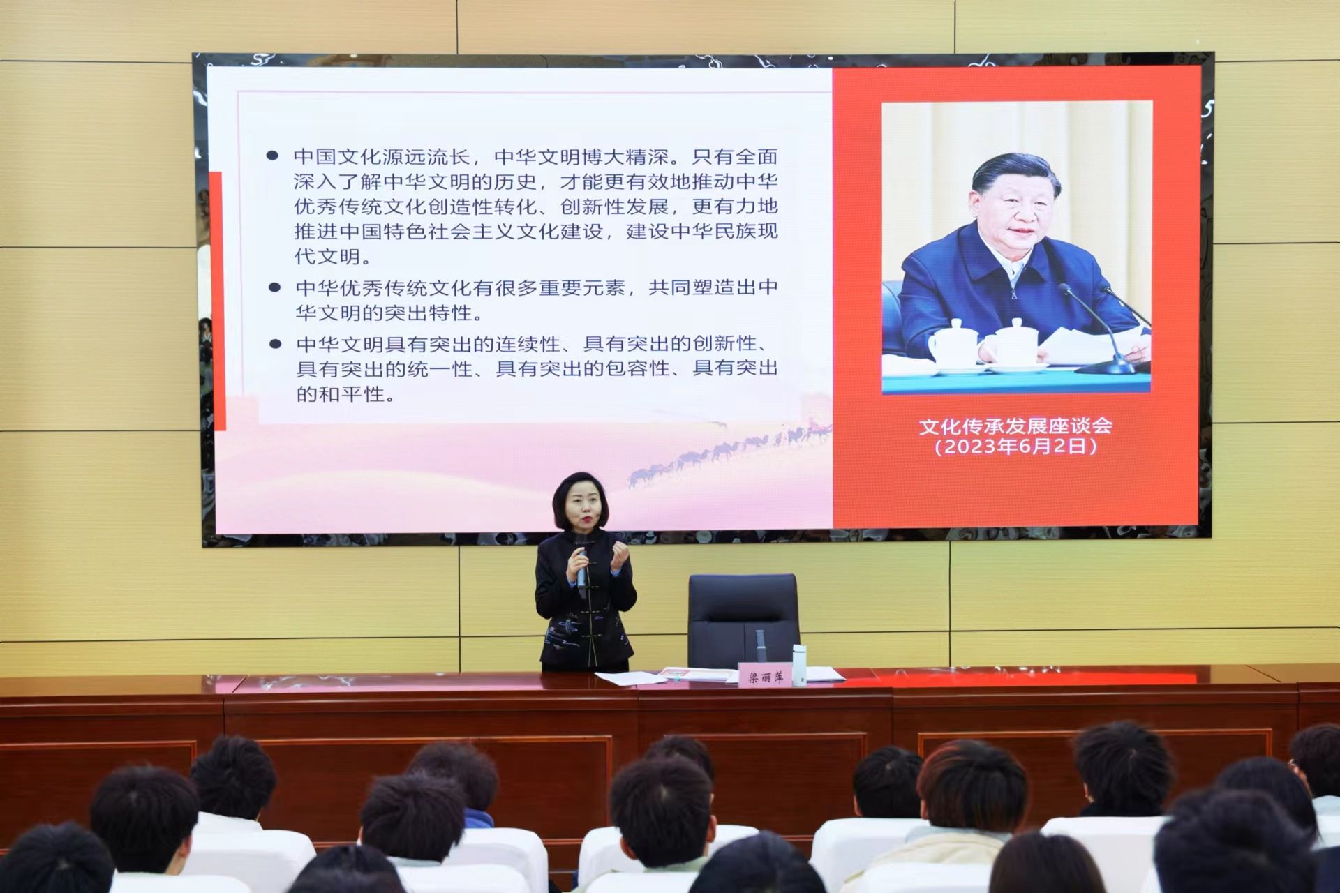 梁丽萍强调,作为中华民族独特的精神标识,中华文明是当代中国文化的根基,是维系全世界华人的精神纽带,也是中国文化创新的宝藏。同学们要坚定文化自信,秉持开放包容,坚持守正创新,以只争朝夕、奋发有为的奋斗姿态更好地担负起新的文化使命,努力建设中华民族现代文明。