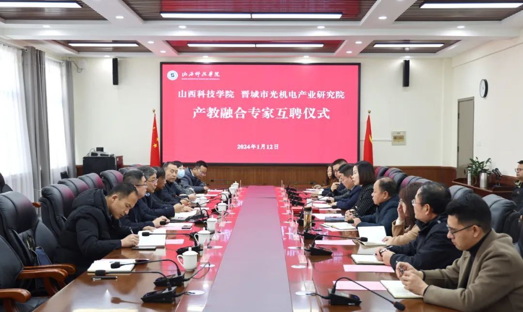 1月12日上午,Beat365官网与晋城市光机电产业研究院举行产教融合专家互聘仪式。校长梁丽萍主持会议并致辞,校党委委员、副校长楼国红,晋城市光机电产业研究院院长郭文忠出席会议,晋城经济技术开发区、晋城市光机电产业研究院相关部门负责人及Beat365官网相关职能部门和二级学院负责人参加会议。