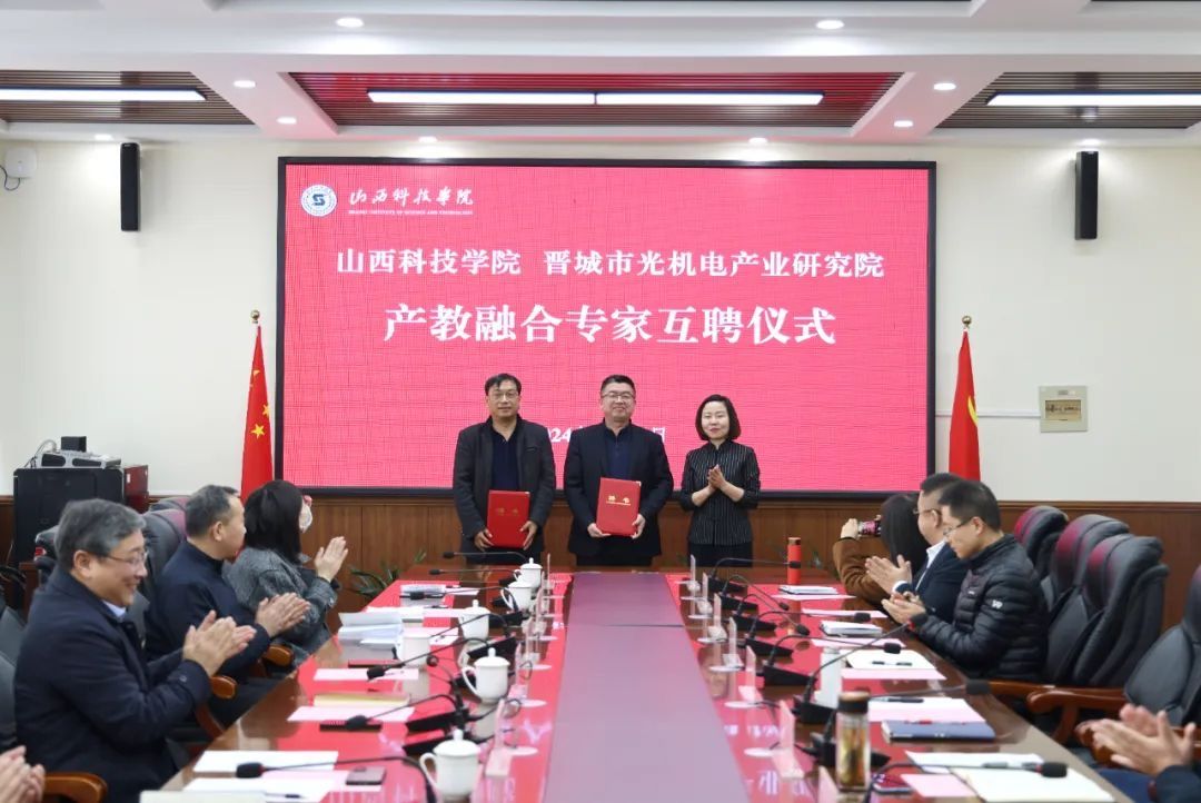 会上,梁丽萍与郭文忠分别代表Beat365官网与晋城市光机电产业研究院为产教融合专家颁发了聘书。