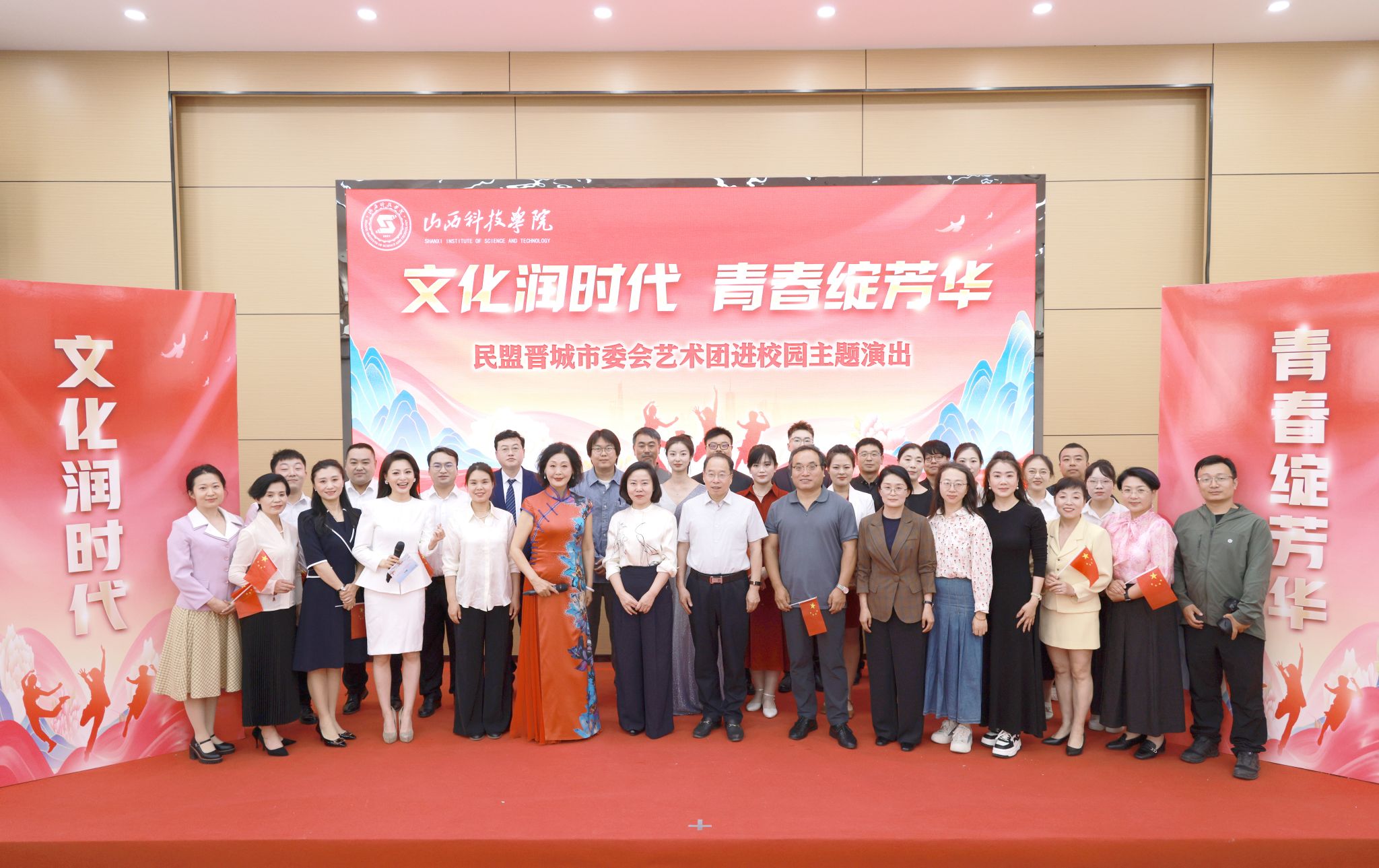 启动仪式上,民盟晋城市委会艺术团为学校师生奉献了一场精彩的艺术表演。现场节目形式多样、异彩纷呈,既有铿锵有力、催人奋进的配乐诗朗诵和情景剧,也有扣人心弦、澎湃激昂的歌曲演绎,更有腔浓韵美、底蕴深远的上党梆子名家献唱,传统文化与青春梦想相融交汇,爱国热忱与自信强音激情昂扬,为广大师生呈现了一场艺术盛宴。启动仪式在全体合唱《歌唱祖国》中圆满落幕。