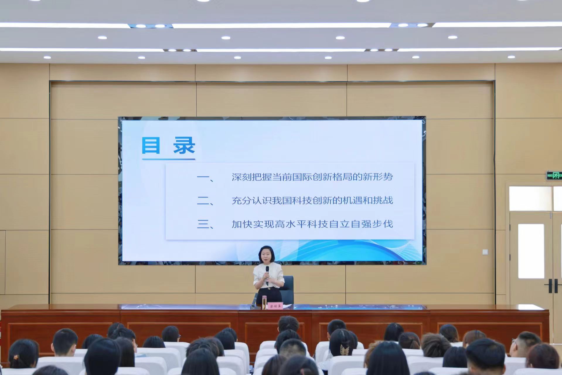 梁丽萍强调,科技立则民族立,科技强则国家强。青年学生要深刻把握百年变局之下,科技创新是“关键变量”,充分认识我国科技创新取得的成就和面临的挑战,牢固树立“科技创新、强国有我”的报国志向,传承弘扬追求真理、勇攀高峰的科学家精神,淬炼过硬科学本领,厚植卓越科学素养,将自身学科专业融入社会实践,将个人成长成才融入时代洪流,在实现高水平科技自立自强和建设科技强国、人才强国实践中建功立业,在以中国式现代化全面推进中华民族伟大复兴进程中奉献青春和智慧。