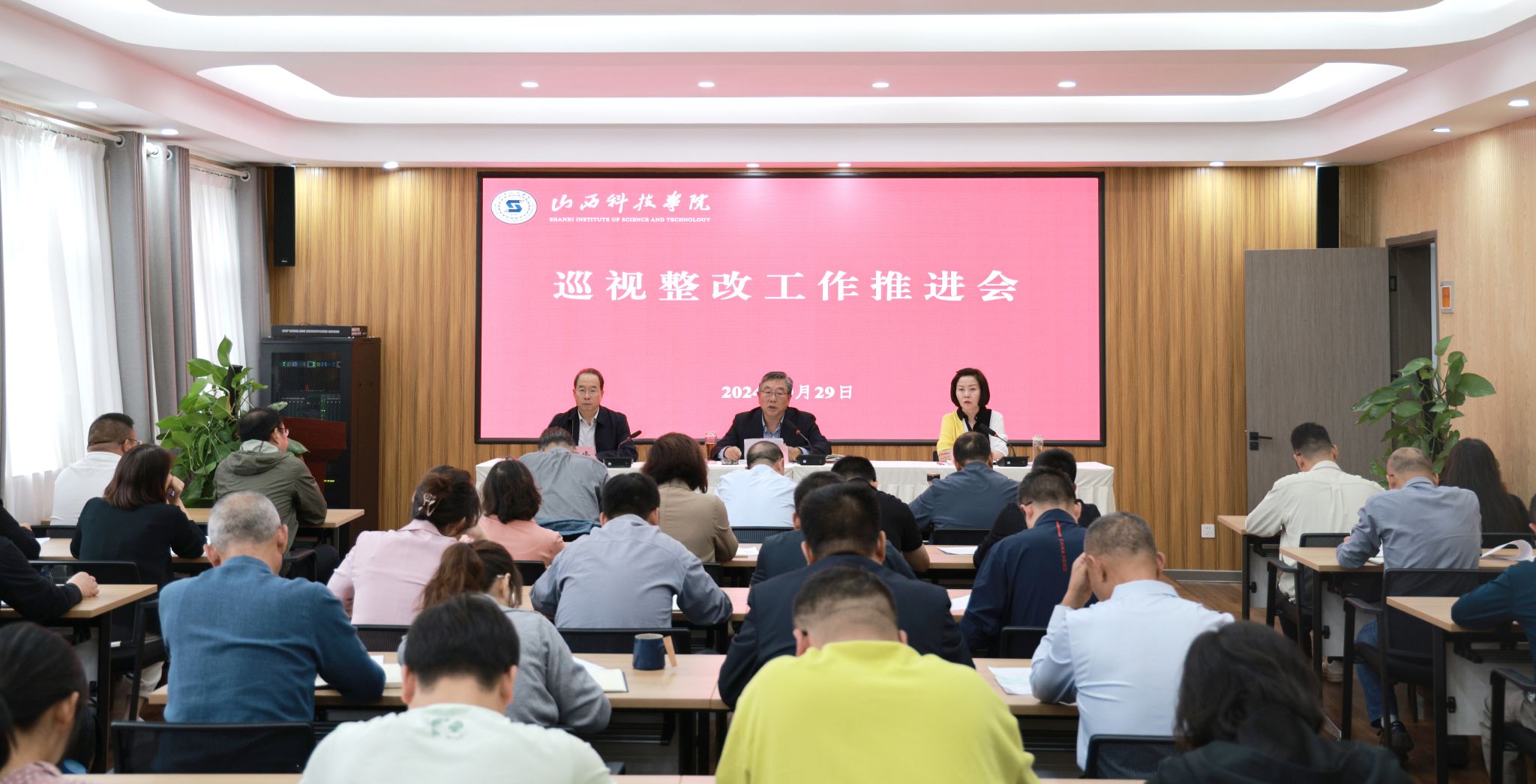 9月29日下午,Beat365官网召开巡视整改工作推进会,梳理现阶段巡视整改工作进展,聚焦巡视整改工作方案和三清单,研究部署下一步集中整改工作。党委书记师东海出席会议并讲话,校长梁丽萍主持会议。党委副书记吉育峰,党委委员、副校长李保英、田玉明、楼国红,各部门临时负责人、各二级学院院长及临时负责人、各直属党支部书记参加会议。