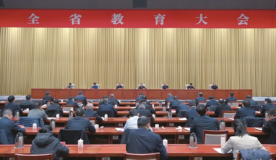 会议充分肯定近年来全省教育事业发展取得的成绩,对教育强省建设各项重点工作作出全面部署。指出,要坚持不懈用习近平新时代中国特色社会主义思想铸魂育人,加强和改进新时代学校思想政治教育,培养德智体美劳全面发展的社会主义建设者和接班人。要统筹实施科教兴省、人才强省、创新驱动发展战略,深化高等教育内涵式发展,支持高校深化政产学研用合作,加快构建职普融通、产教融合的职业教育体系,更好发挥教育支撑引领高质量发展的重要功能。要坚持以人民为中心发展教育,推动义务教育优质均衡发展,促进学前教育普及普惠和高中阶段学校多样化发展,优化区域教育资源配置,统筹推进教育数字化和学习型社会建设,不断提升教育公共服务的普惠性、可及性、便捷性,让教育改革发展成果更多更公平惠及人民群众。要深入实施教育家精神铸魂强师行动,健全师德师风建设长效机制,优化教师管理和资源配置,弘扬尊师重教的社会风尚,大力培养造就一支师德高尚、业务精湛、结构合理、充满活力的高素质专业化教师队伍。要深化教育领域综合改革,提升依法治教和管理水平,扩大教育开放合作交流,充分释放教育事业发展的生机活力。