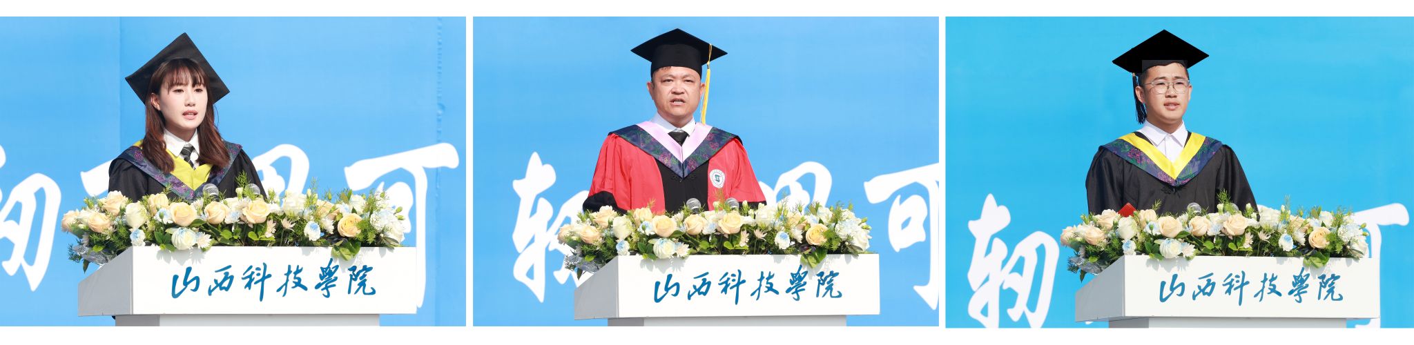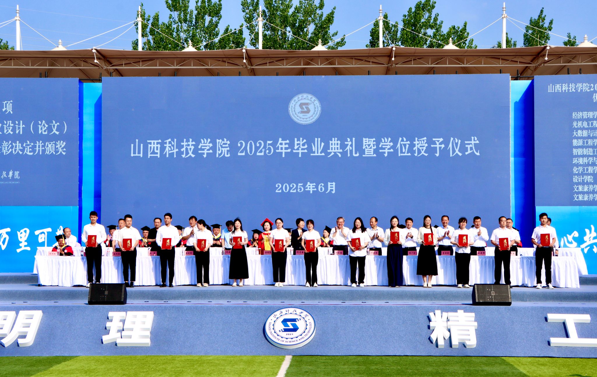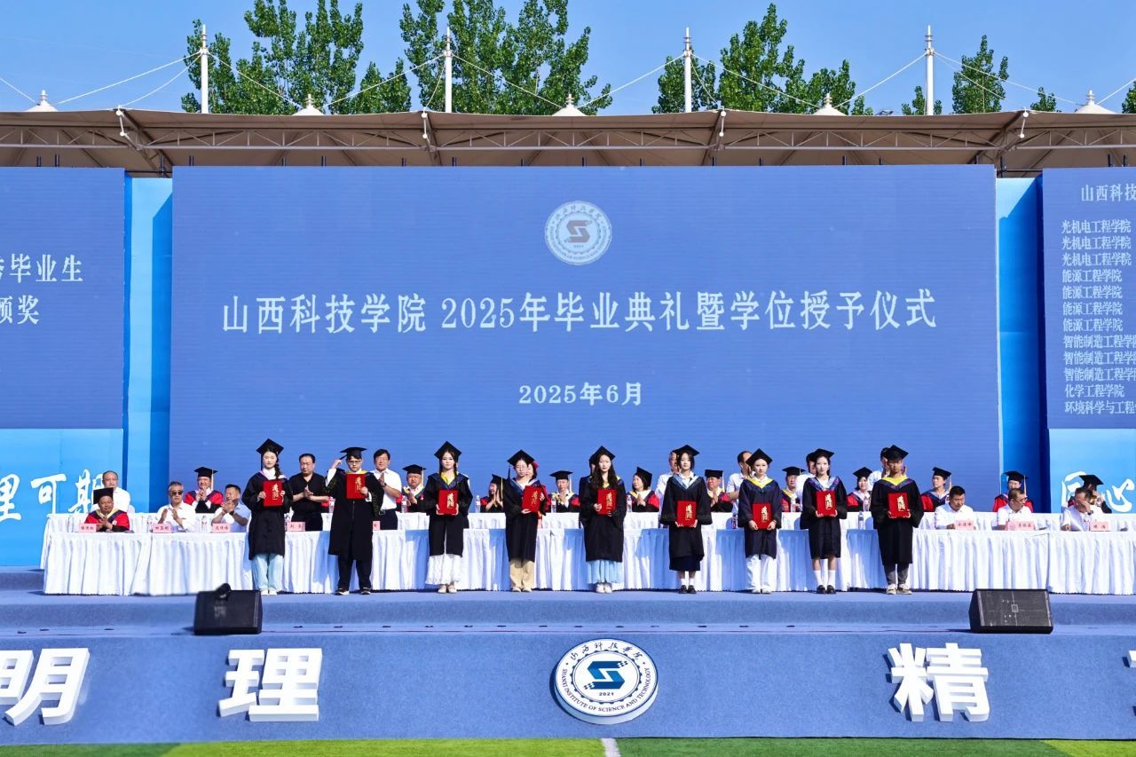 校领导分别宣读2025届毕业生学位授予决定、优秀毕业生表彰决定、优秀毕业设计(论文)获得者及优秀指导教师表彰决定,并进行颁奖。教师代表文旅康养学院教师韩晓斌、毕业生代表计算机科学与技术2104班高浩、化学工程与工艺2101班李越分别发言。