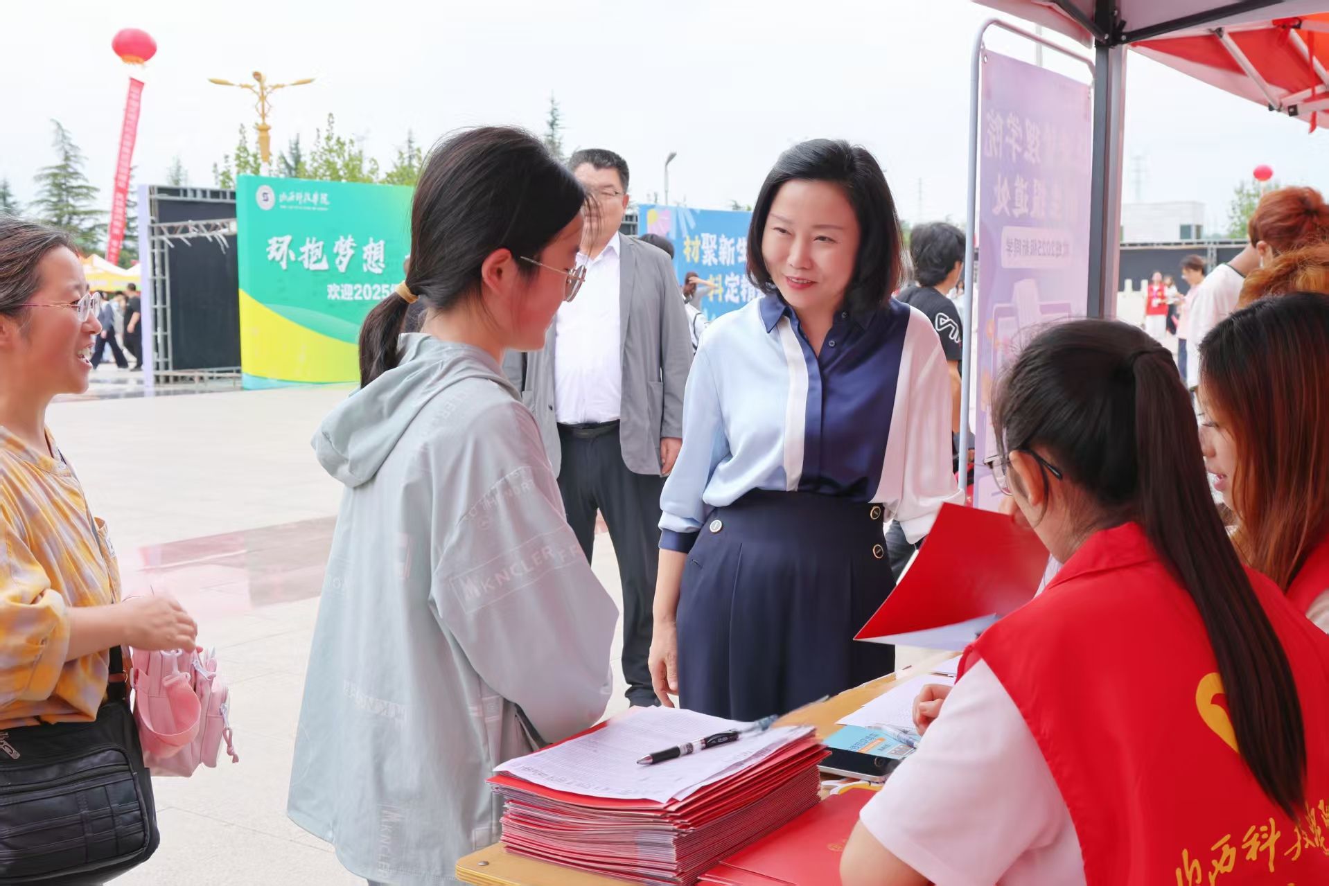 校党委书记师东海、校长梁丽萍先后带队深入迎新现场、接站点、学生公寓、食堂慰问指导,与新生和家长热情交流,关切询问入学适应、住宿安排等情况,鼓励新生尽快融入大学生活。
