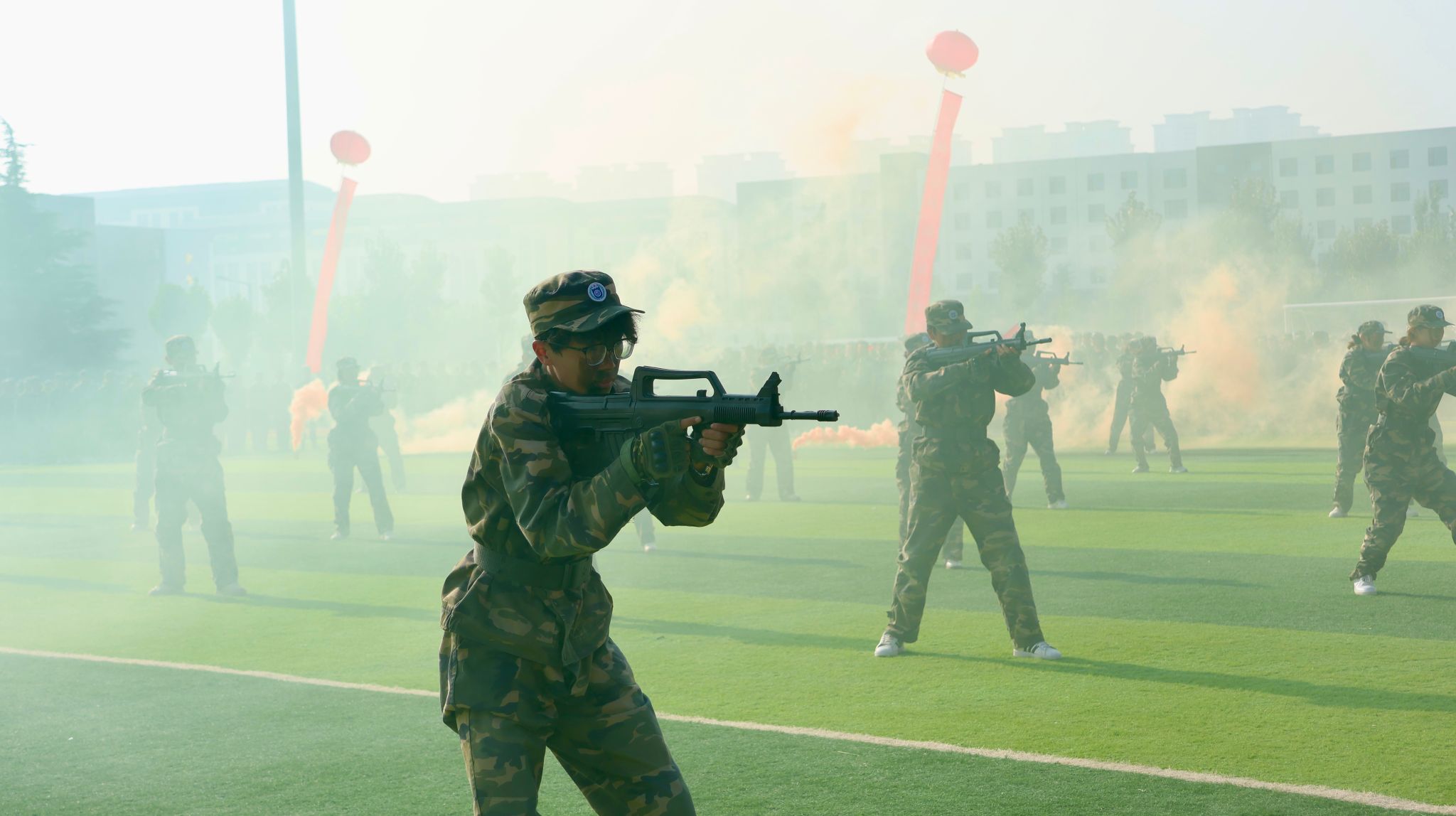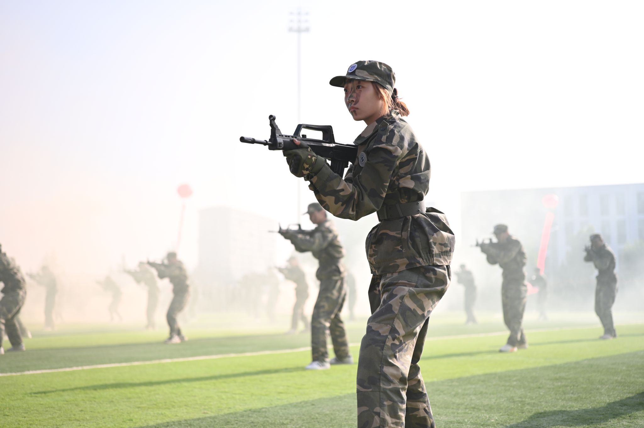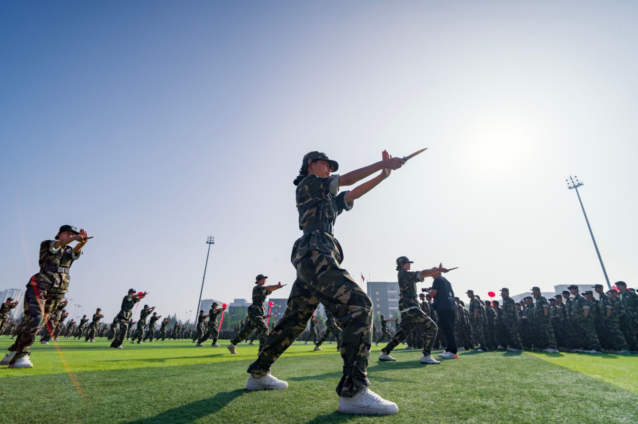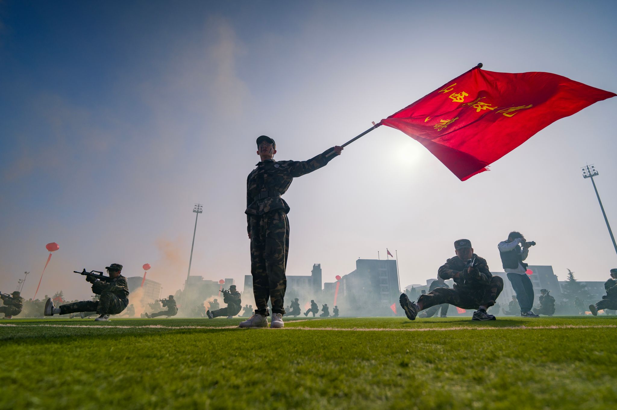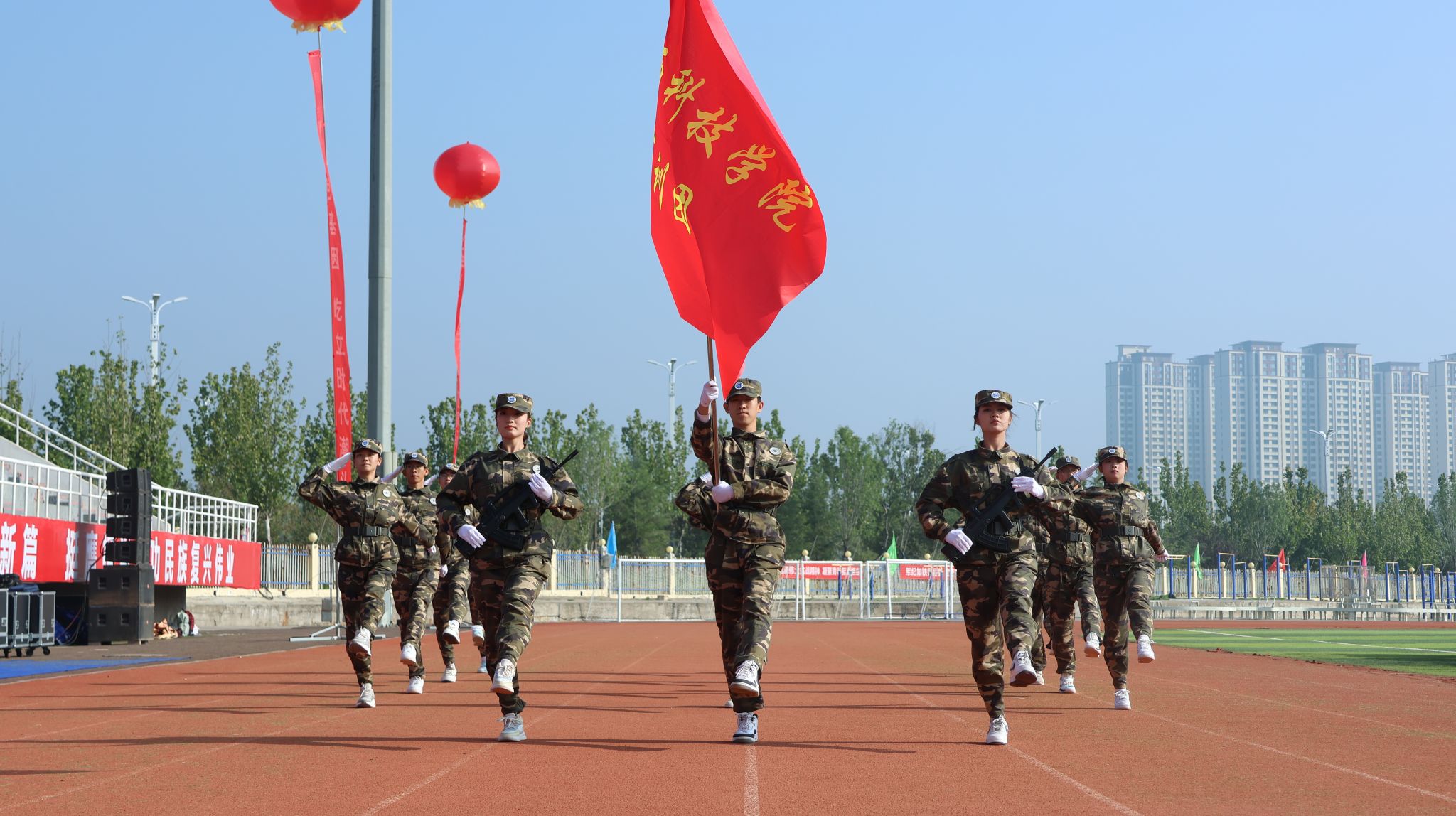 梁丽萍向武警晋城支队赠送题为“铁血铸魂承抗战精神悉心执教育山科学子”的锦旗,并下达“按计划进行”口号。全体参训学生军容严整、步伐矫健、精神饱满、口号响亮,以挺拔之姿、昂扬之态通过主席台接受检阅。技能展示环节亮点纷呈,擒敌拳拳风凛冽、匕首操英姿勃发、应急棍术刚劲有力、战术连气势雄浑……充分展现了山科学子朝气蓬勃、自强不息的精神风貌。