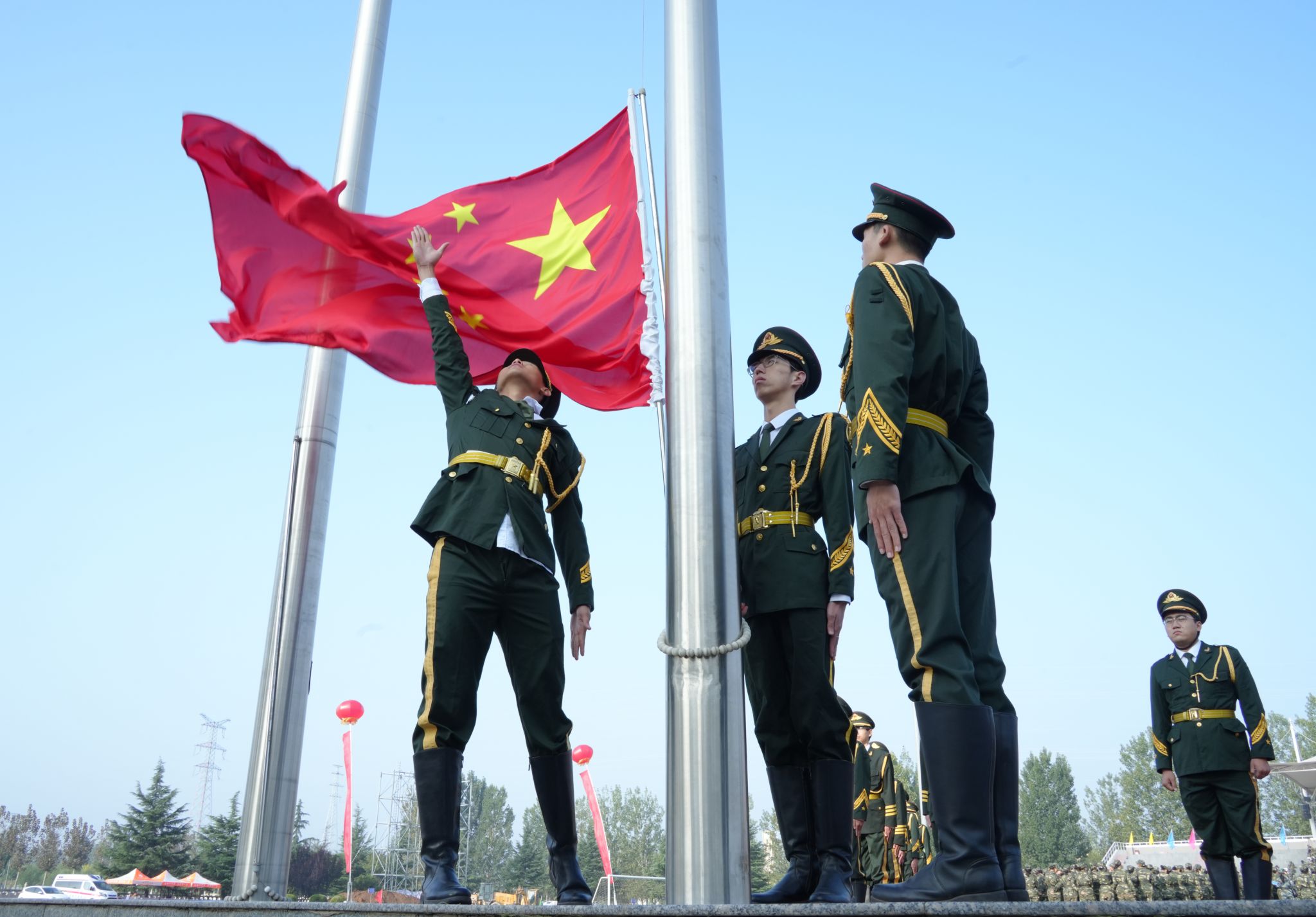 雄壮的国歌声中,五星红旗冉冉升起,全体师生肃立凝视,大会正式拉开帷幕。