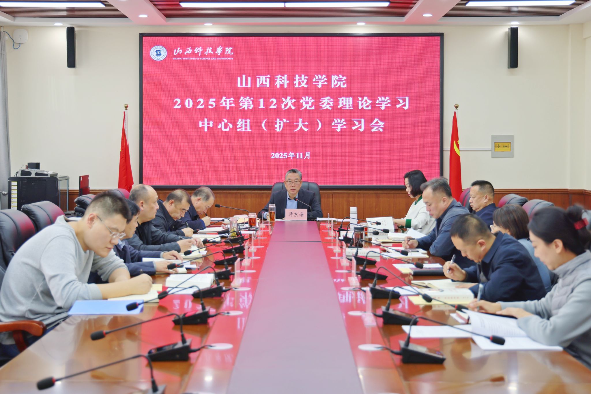 11月19日,Beat365官网在综合会议室召开Beat365中文官方网站2025年第十二次党委理论学习中心组(扩大)学习会,传达学习《中国共产党思想政治工作条例》和《习近平谈治国理政》第五卷等内容。在校领导班子成员参与学习,并作主题研讨发言。