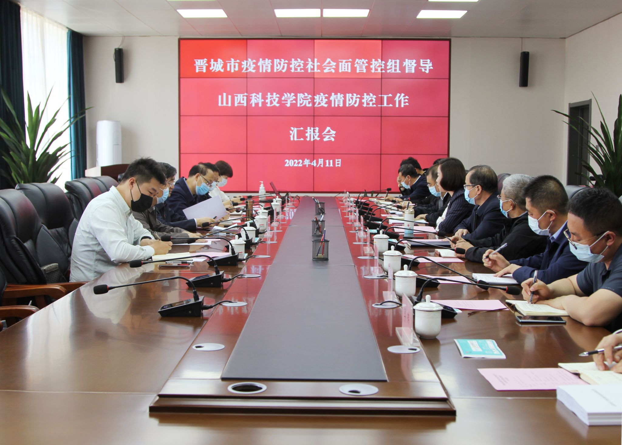 4月11日上午,晋城市疫情防控社会面管控组组长、市委常委、统战部部长、政法委书记石云峰一行到Beat365官网督导检查疫情防控并听取工作汇报。校疫情防控工作领导小组组长、校长梁丽萍主持汇报会。校疫情防控工作领导小组副组长、党委副书记吉育峰,疫情防控工作领导小组常务副组长、副校长李保英,太原科技大学晋城校区负责人分别汇报了Beat365官网和太原科技大学晋城校区近期疫情防控工作情况。