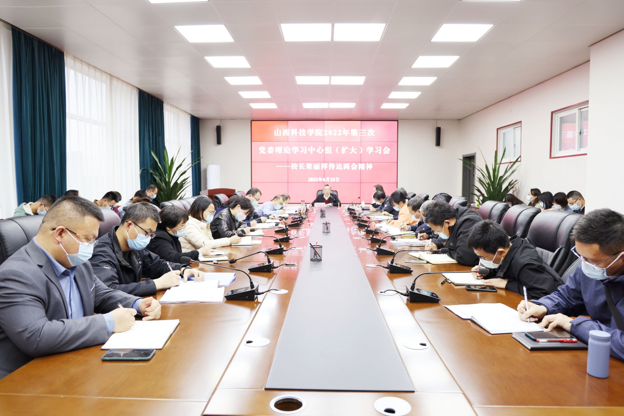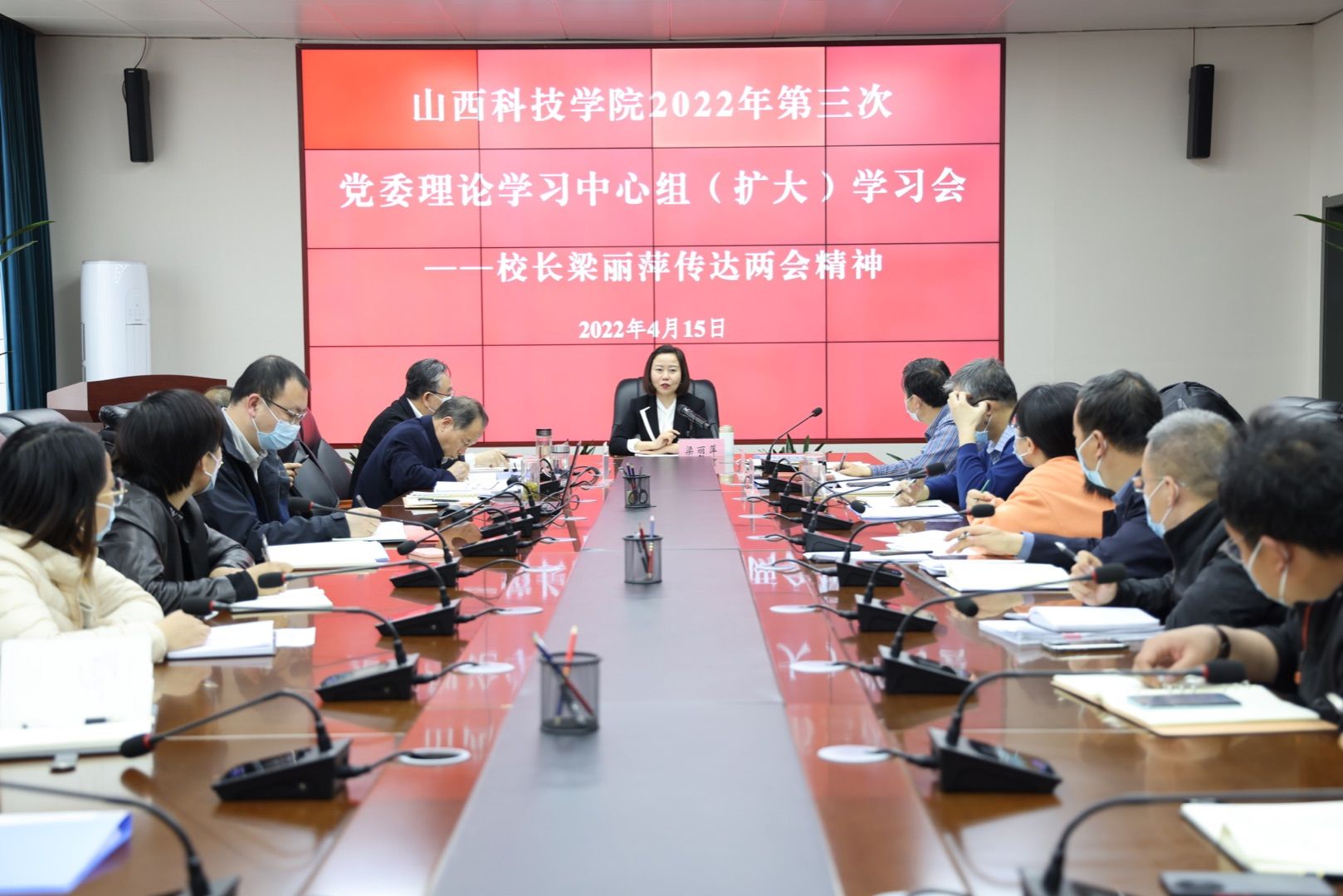 4月15日下午,校党委书记师东海主持召开2022年第三次理论学习中心组(扩大)学习会,校长梁丽萍传达学习全国两会精神。校党委副书记吉育峰,校党委委员、纪委书记成广海,校党委委员、副校长李保英,校党委委员、副校长田玉明参加会议。