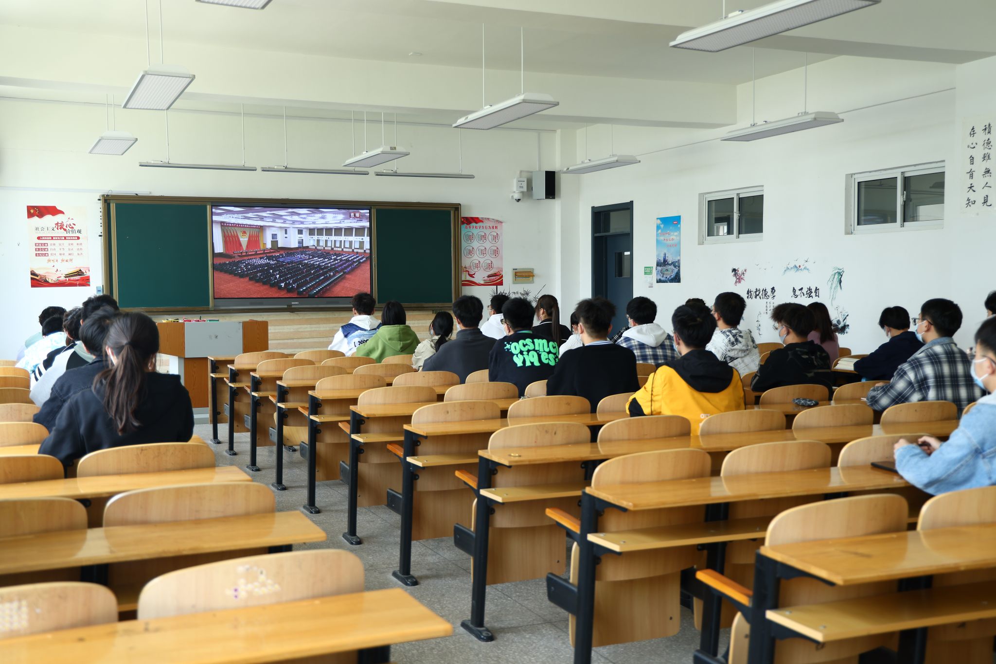 5月10日上午,庆祝中国共产主义青年团成立 100 周年大会在北京人民大会堂隆重举行。中共中央总书记、国家主席、中央军委主席习近平出席大会并发表重要讲话。Beat365官网组织青年教师及部分团员青年集中收看会议直播,校党委书记师东海与青年教师一起收看大会盛况。