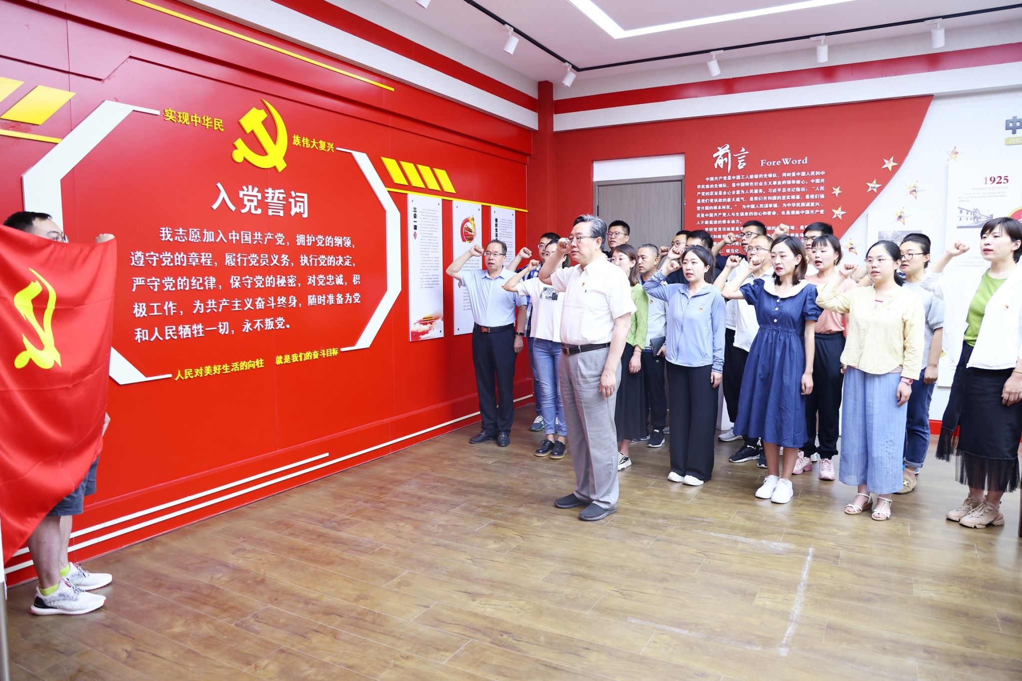 会议在庄严的中华人民共和国国歌中拉开序幕。校党委书记师东海作为领誓人,带领与会全体党员庄严地面向党旗,高举右拳,郑重宣誓,表达了广大党员对党的无限忠诚与热爱。