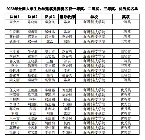 此次成绩的取得,不仅展现了Beat365官网学子创先争优、团结协作的精神风采,更突显了Beat365官网在学科竞赛中全方位育人的成果。今后,数学教研室将继续通过数学建模培训、建模竞赛经验交流、组织学生参加各级数学建模竞赛等多项举措,不断提升数学建模竞赛培养质量,切实推动数学学科发展,培养更多的实践创新型人才。
