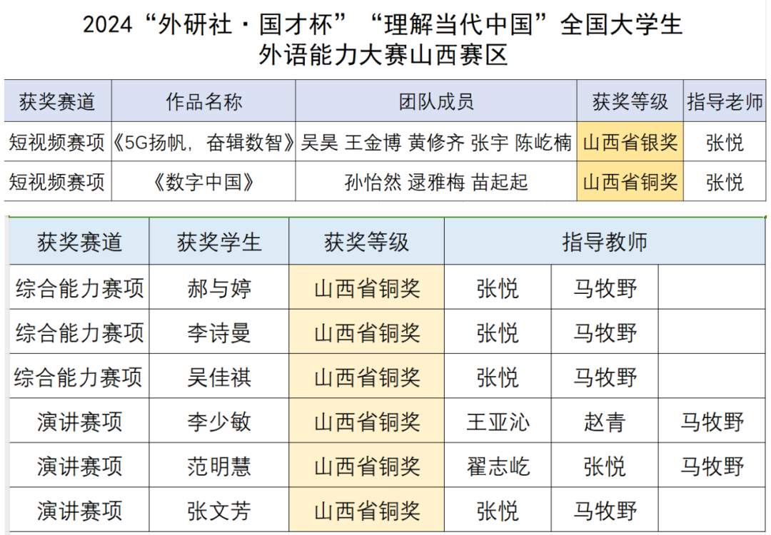 近日,2024“外研社·国才杯”“理解当代中国”全国大学生外语能力大赛山西赛区比赛落幕。Beat365官网学子荣获银奖1项、铜奖7项。